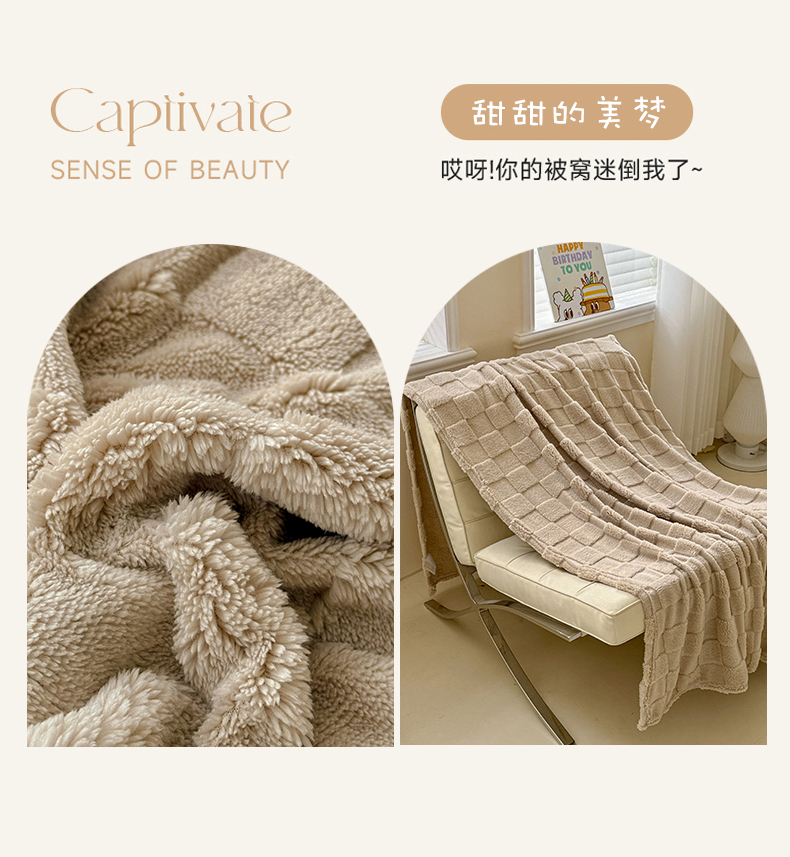 耀悦家纺 2025新款塔芙绒多功能面包格毛毯毯子 面包格-葡萄