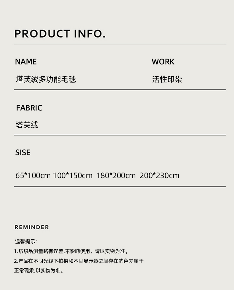 商品名称:耀悦家纺 2025新款塔芙绒多功能面包格毛毯毯子 面包格-葡萄