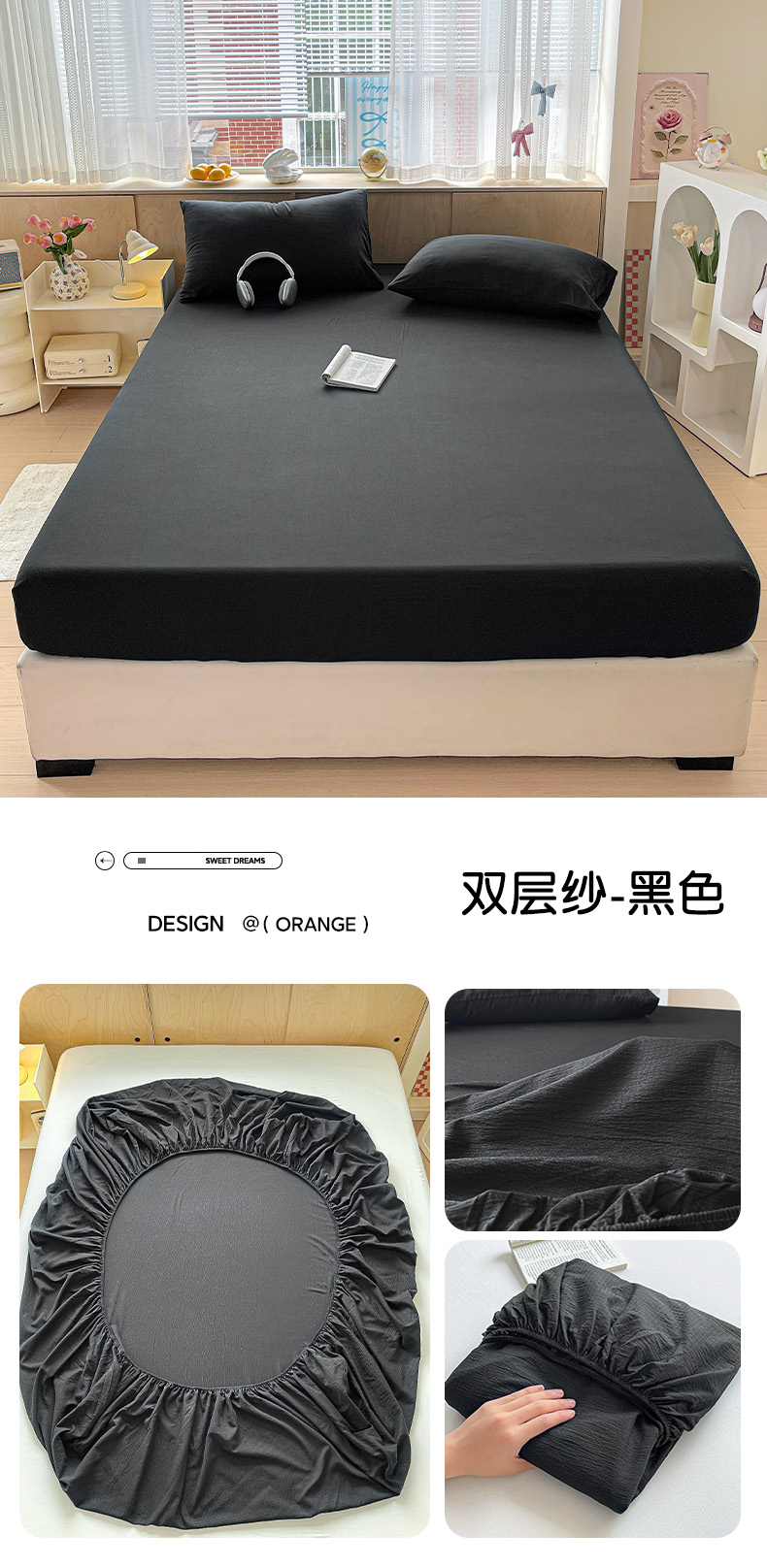 彩韵家纺 2025新款超柔云感双层纱床笠 双层纱-黑色