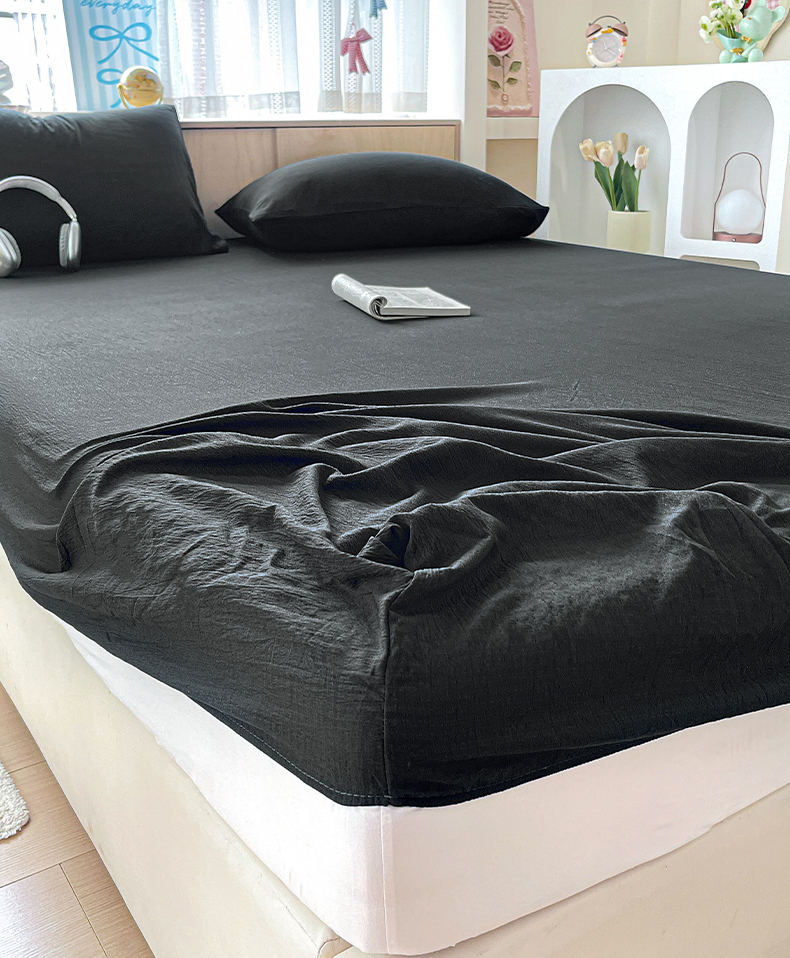 • 91家纺网 家纺一手货源 找家纺 彩韵家纺 2025新款超柔云感双层纱床笠 双层纱-黑色