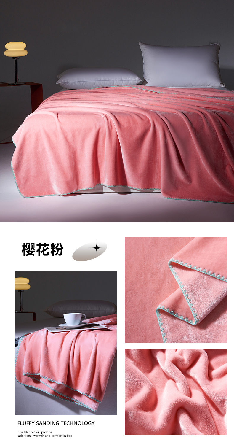 商品名称:馨米莱家纺2025新款贝壳边牛奶绒毛毯 樱花粉