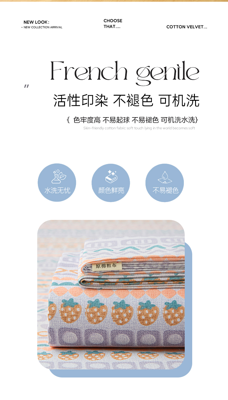• 91家纺网 家纺一手货源 找家纺 首爱家纺2025新款工艺款老粗布床单(量大从优) 草莓情