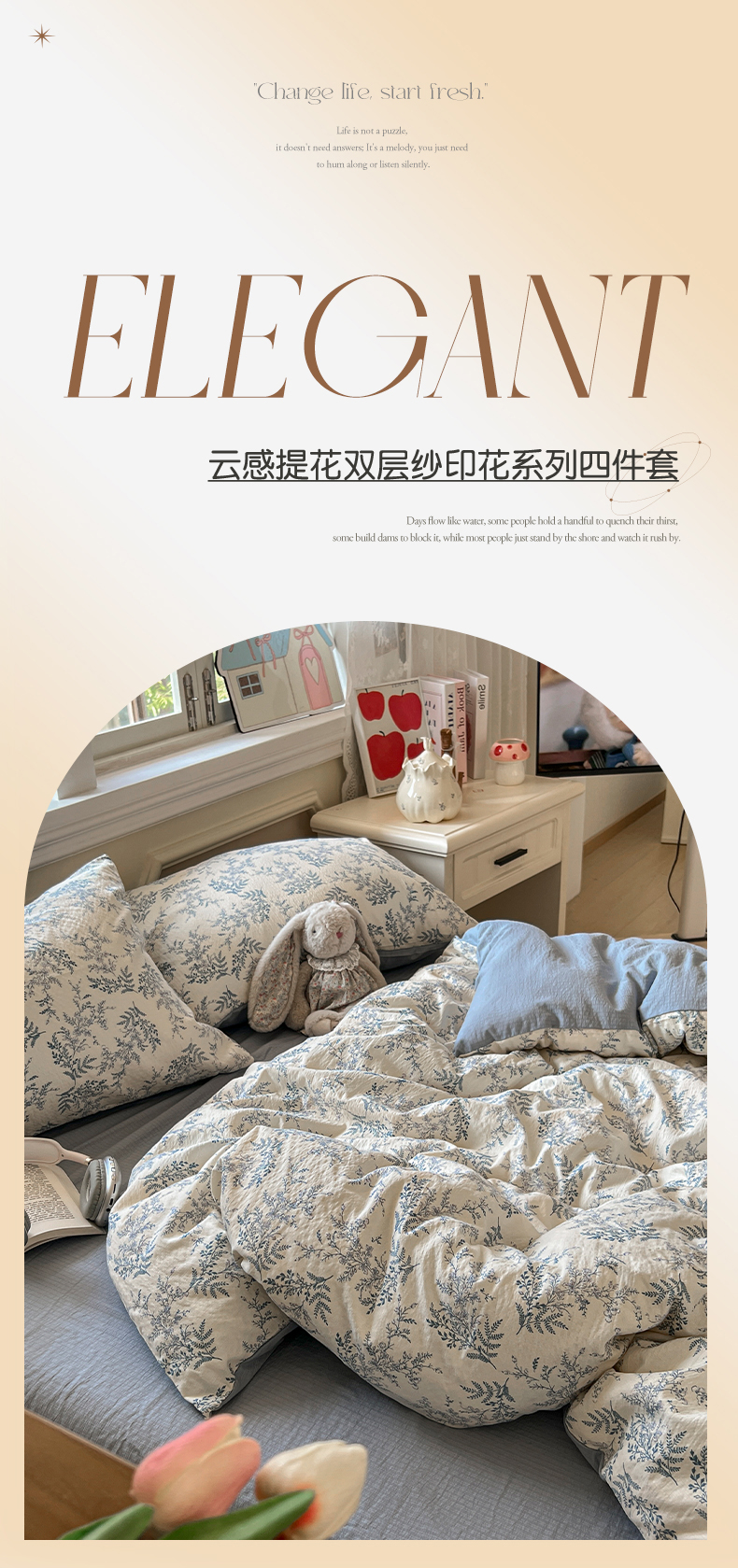 当前位置: 91家纺网 > 商品网购 > 床品套件 > 四件套 > 双层纱四件套 > 妖妖家纺 2025新款云感双层纱四件套 兰亭叙