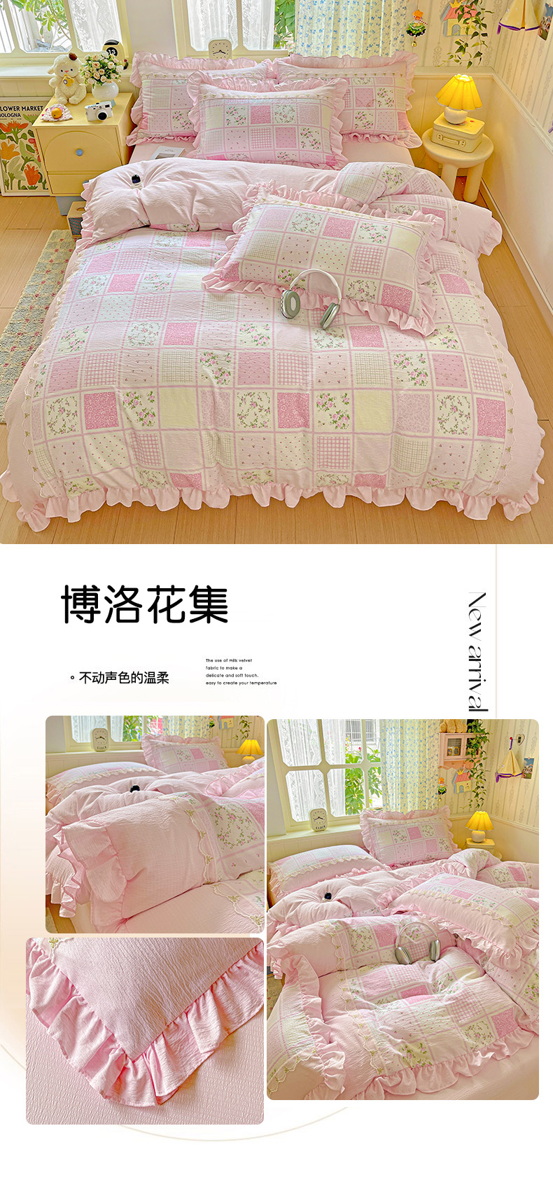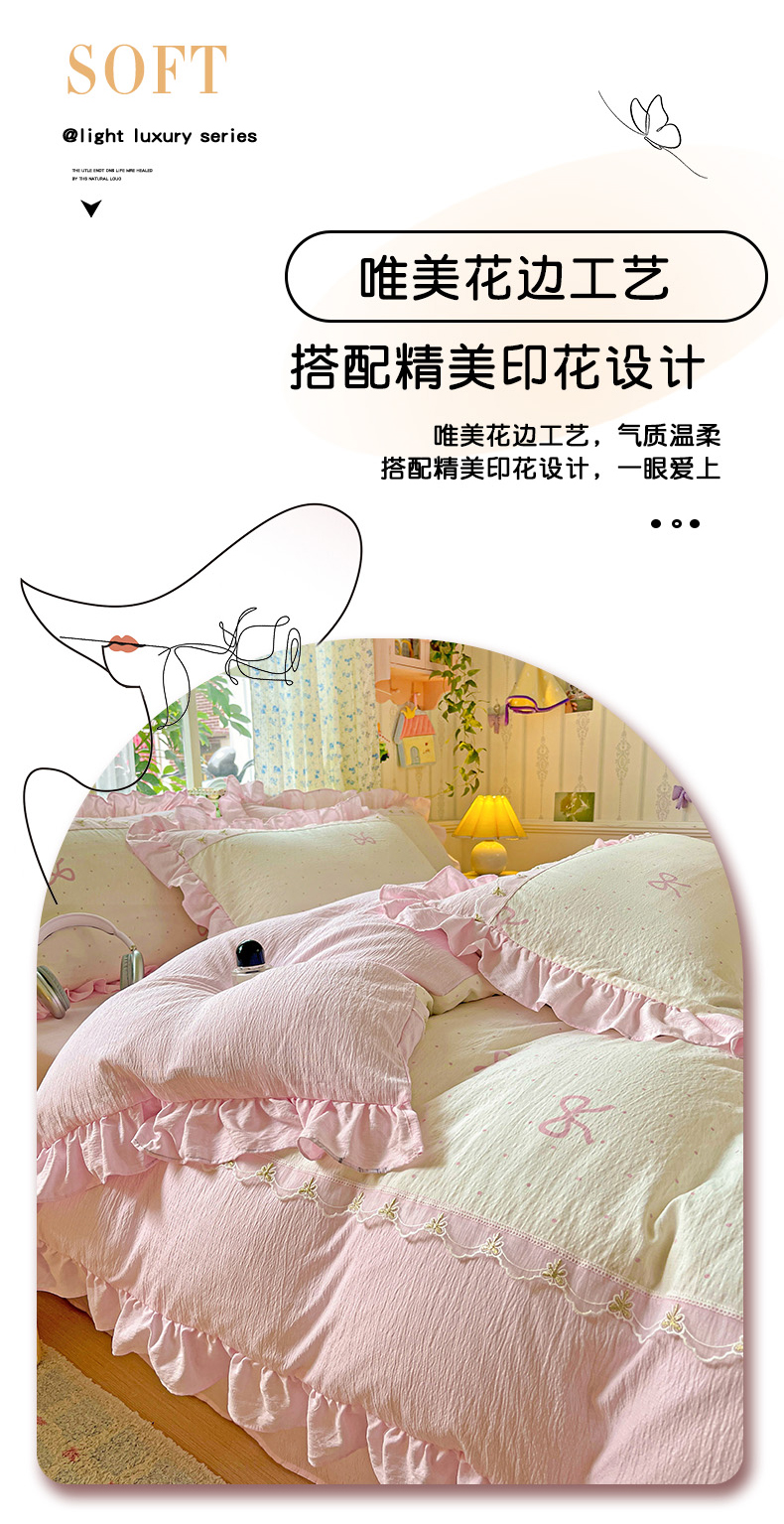 (总)娜娜 2026新款A类云朵锦花边四件套,动物世界-雾蓝,满天星-豆沙,满天星-浅紫,小雏菊-浅绿,小雏菊-玉色,樱花粉