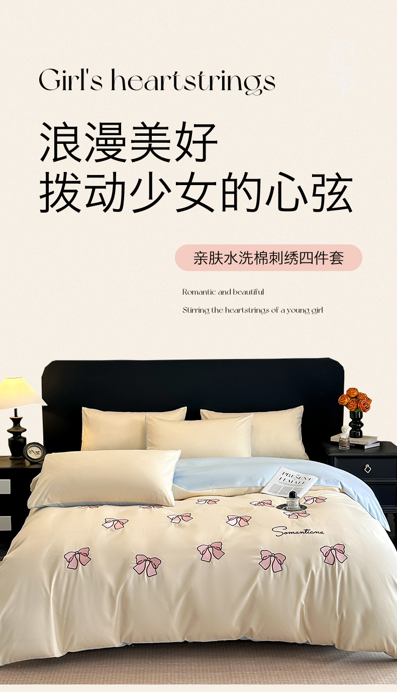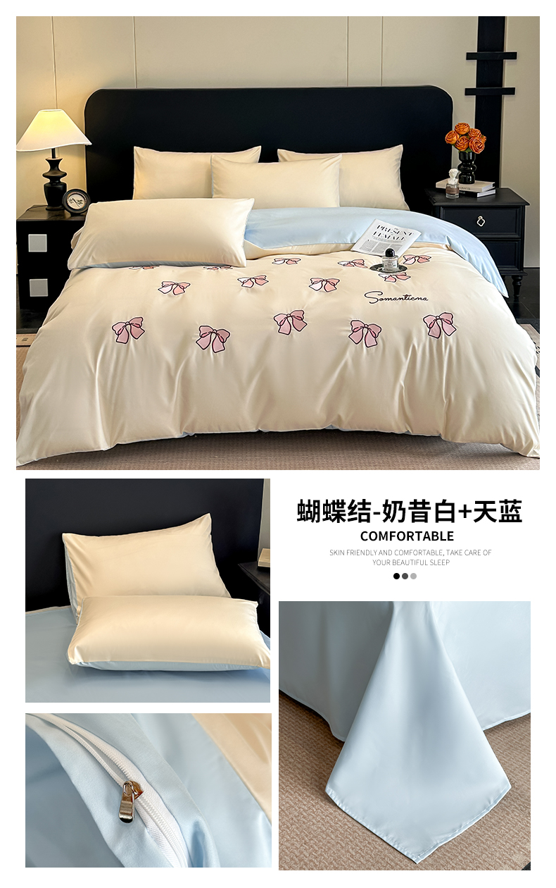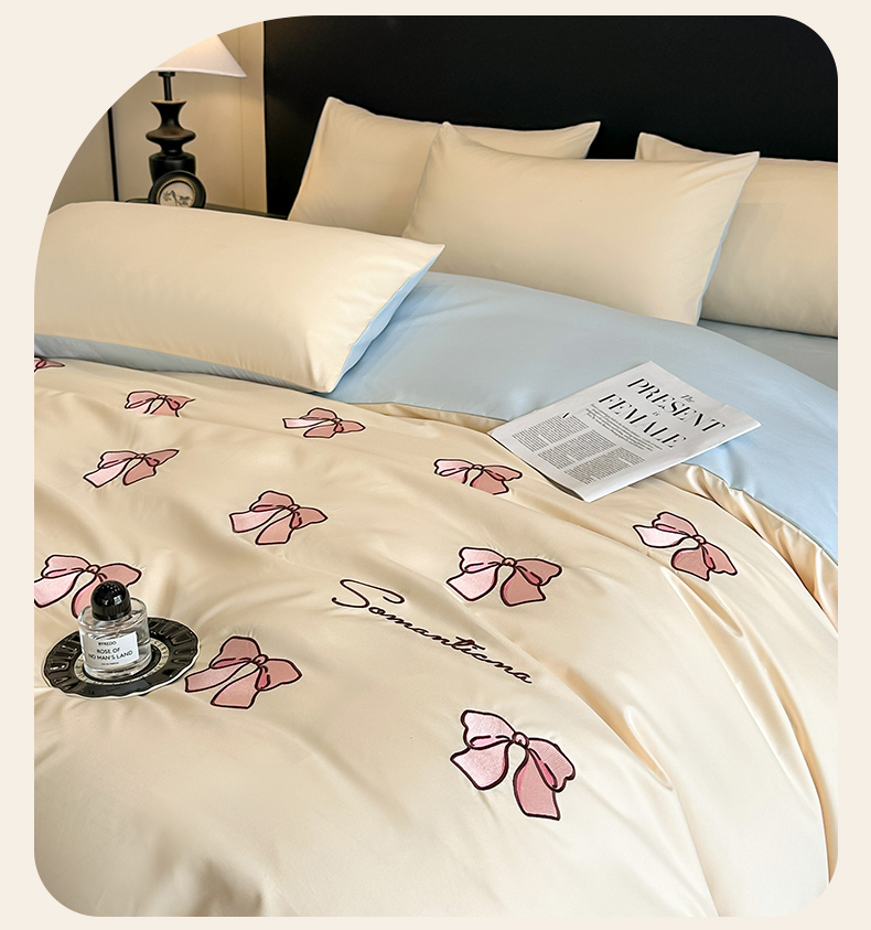 当前位置: 91家纺网 > 商品网购 > 床品套件 > 四件套 > 水洗棉四件套 > 小久久(小九九) 2025新款亲肤水洗棉刺绣满绣四件套 蝴蝶结-奶昔白+天蓝