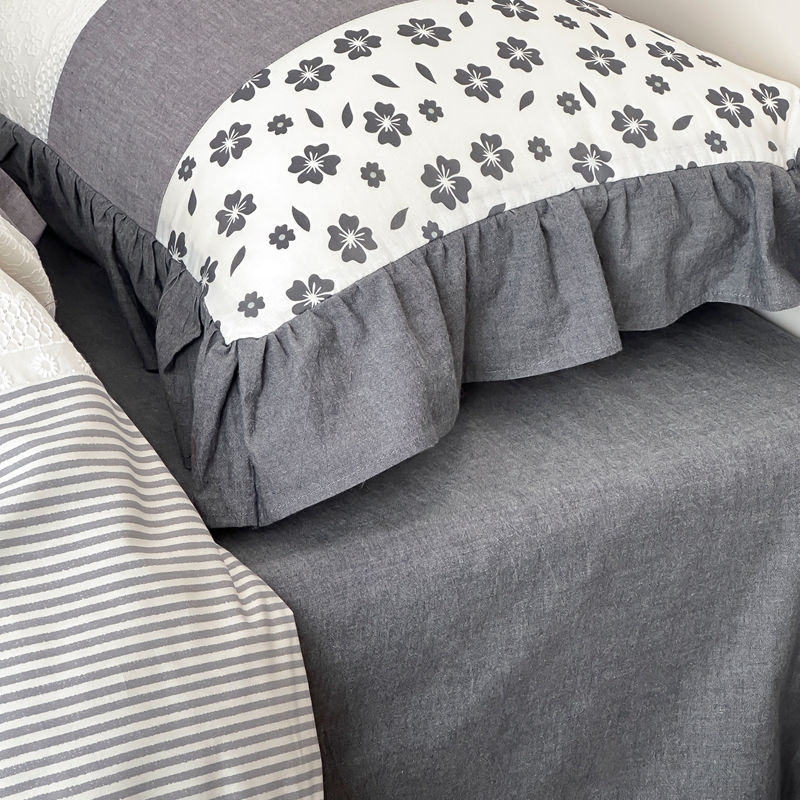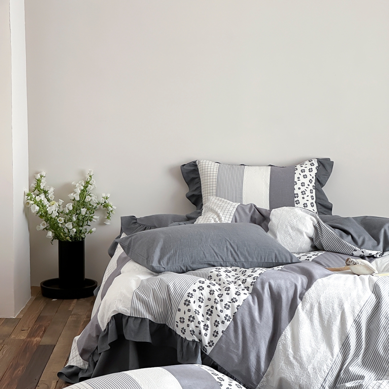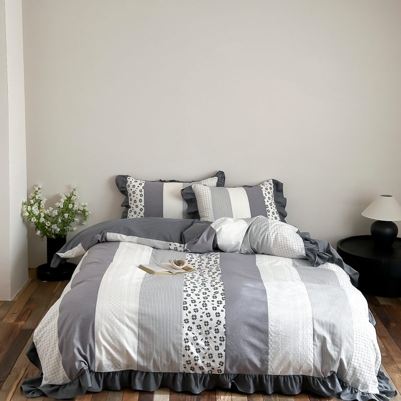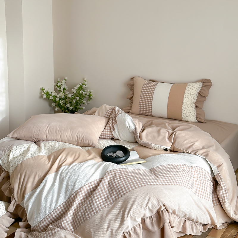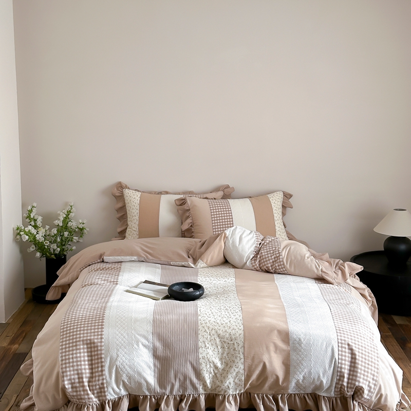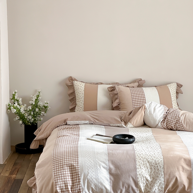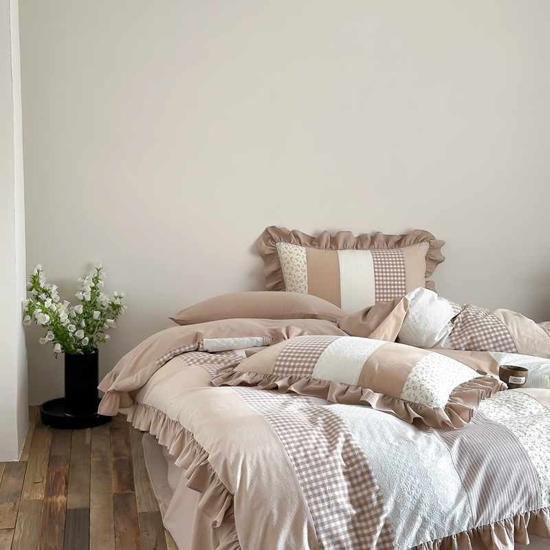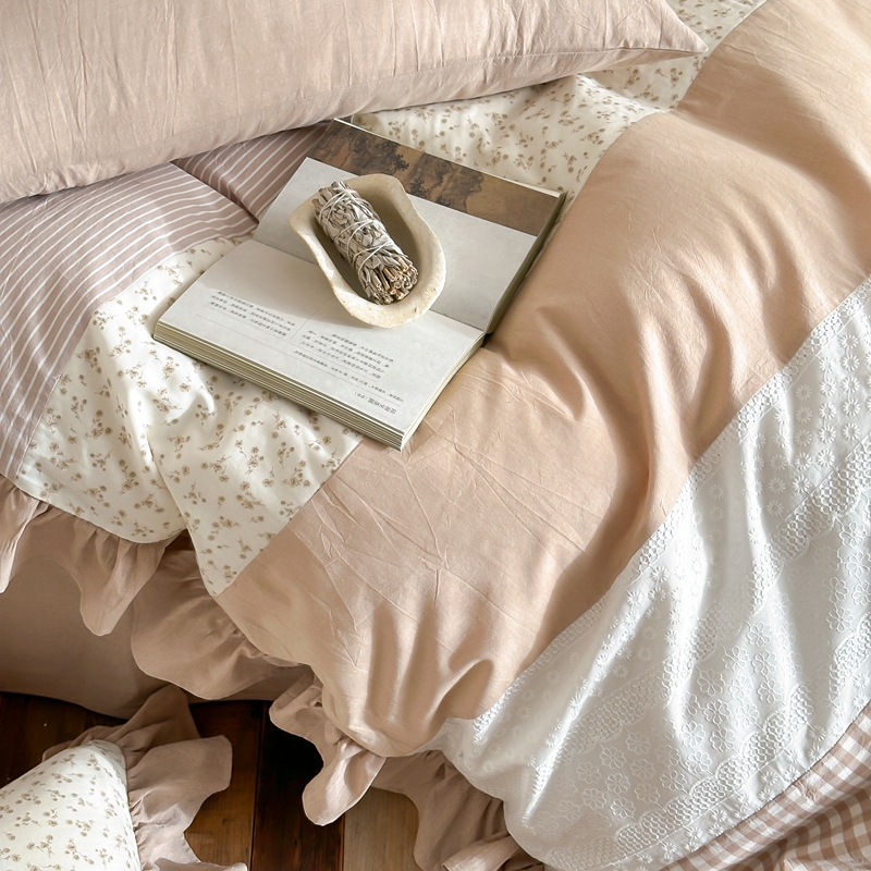 (总)旷野 2025新款空气层提花皱皱纱碎花边工艺款四件套-竹梦,竹梦