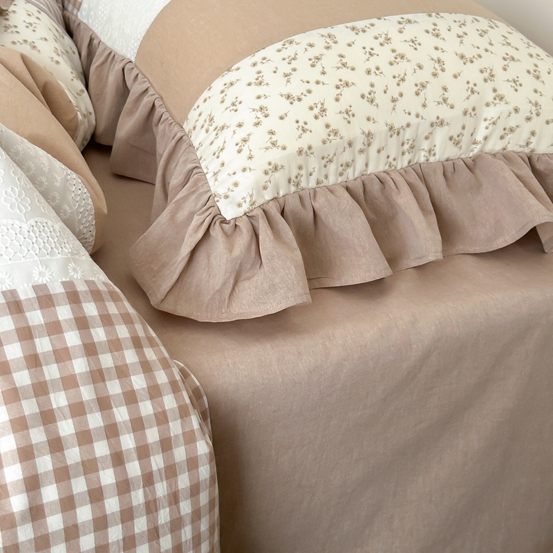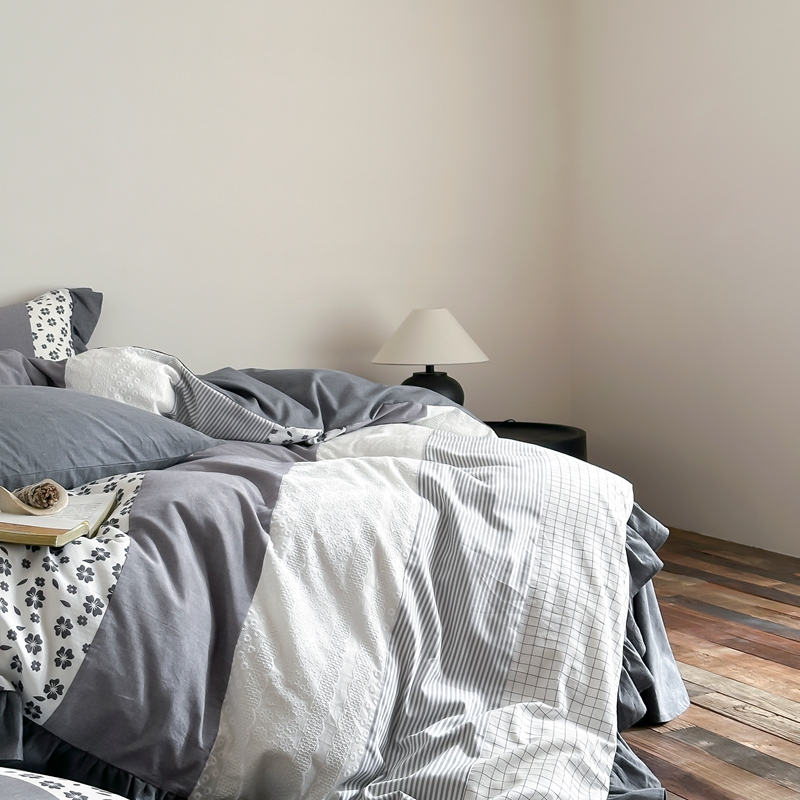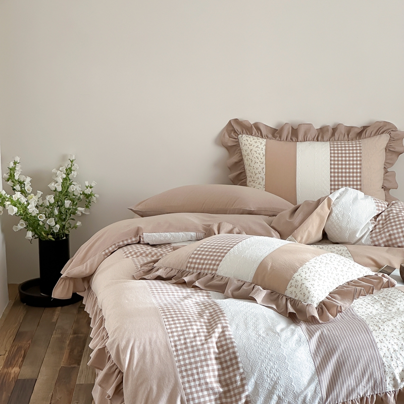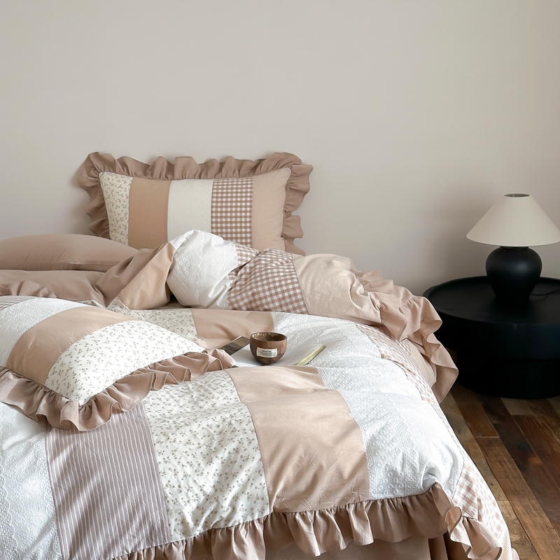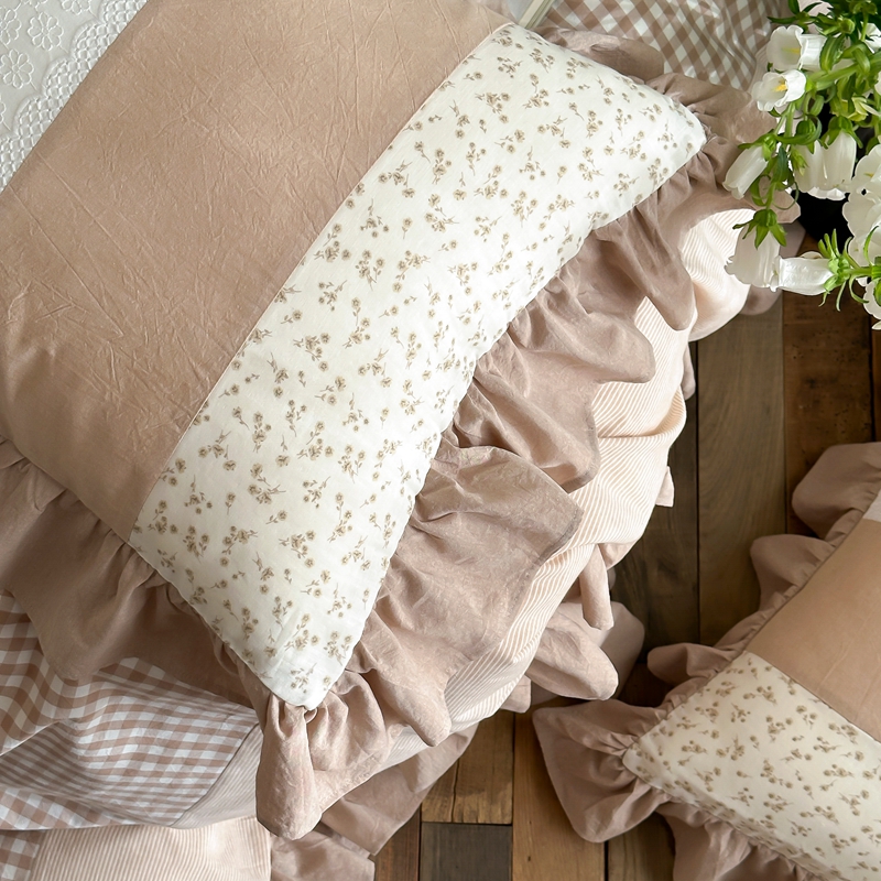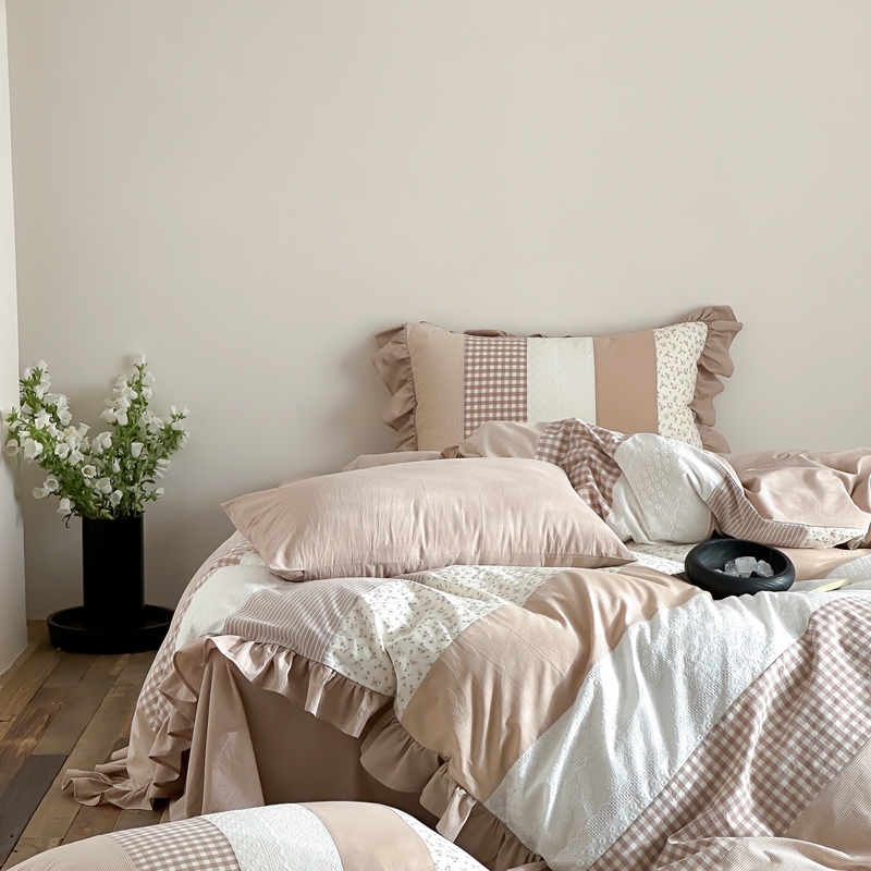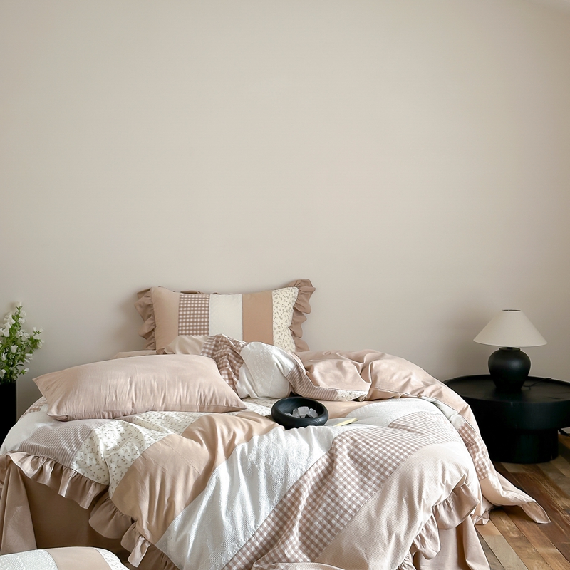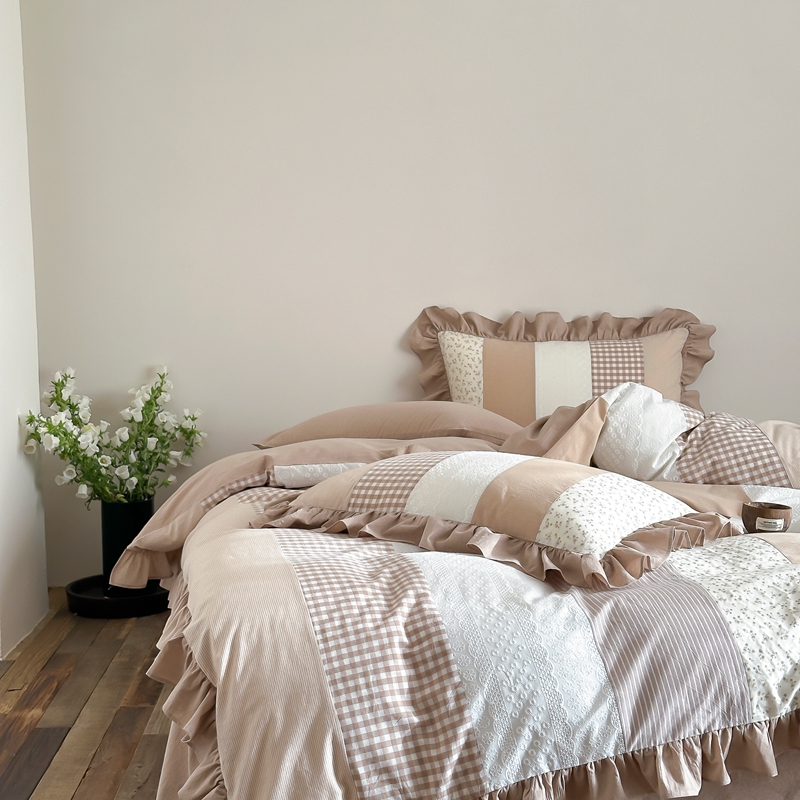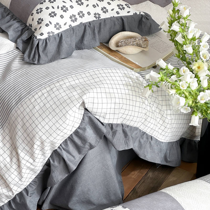 (总)旷野 2025新款空气层提花皱皱纱碎花边工艺款四件套-竹梦,竹梦