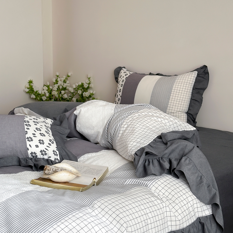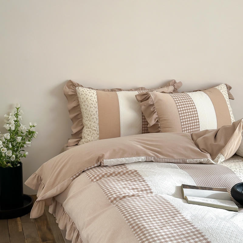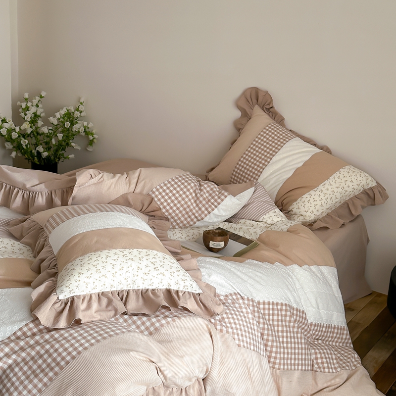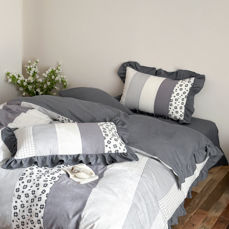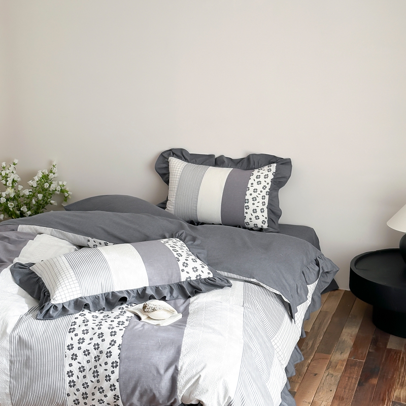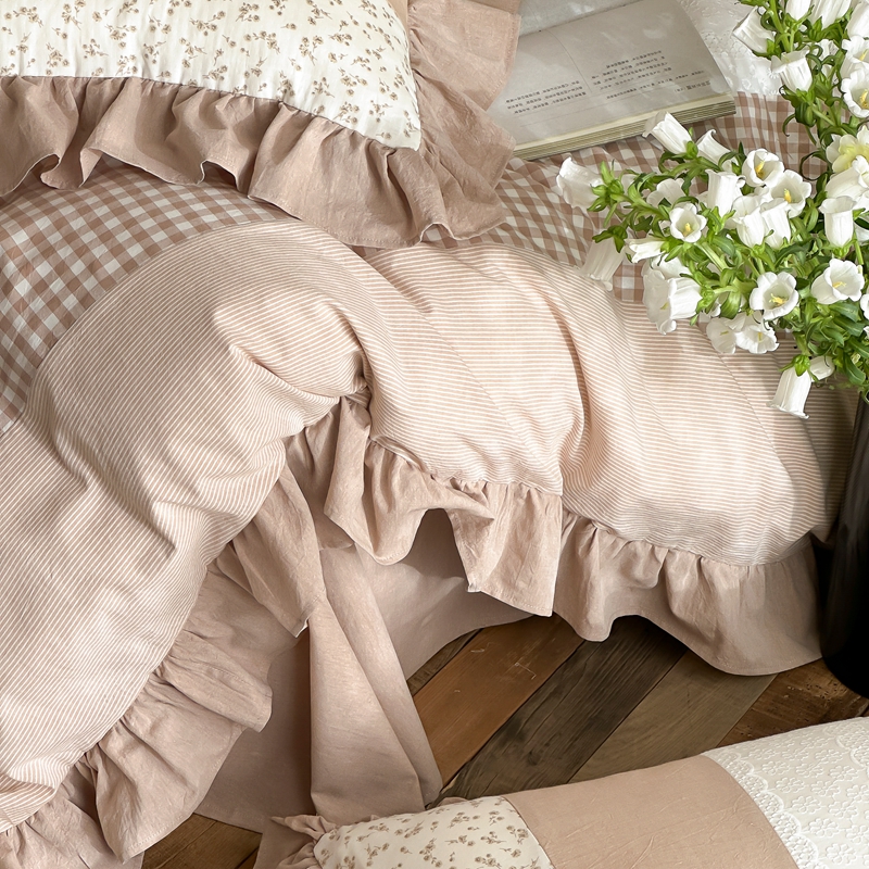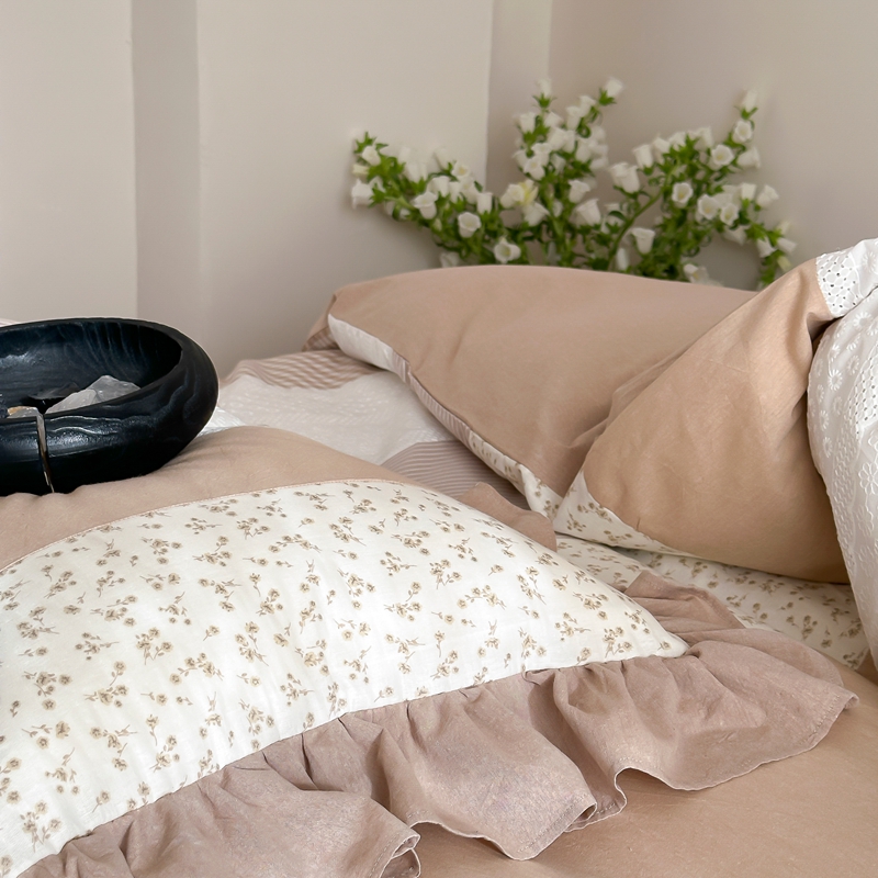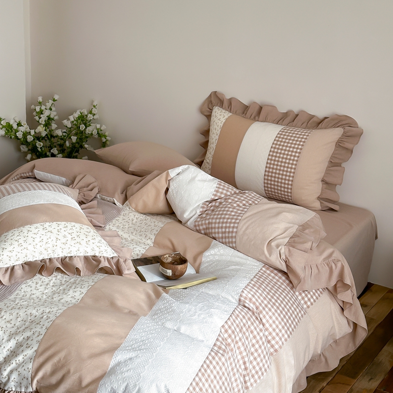 (总)旷野 2025新款空气层提花皱皱纱碎花边工艺款四件套-竹梦,竹梦