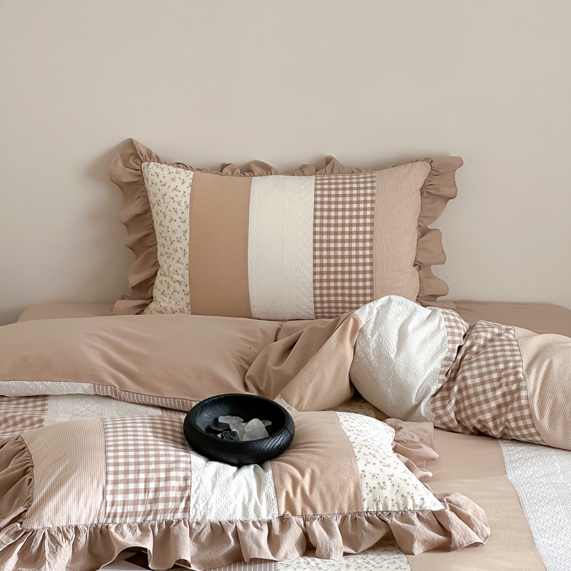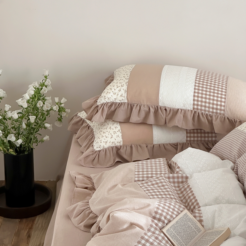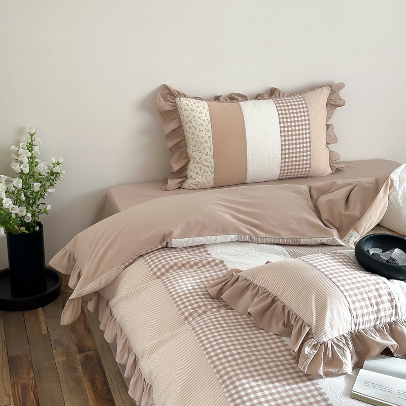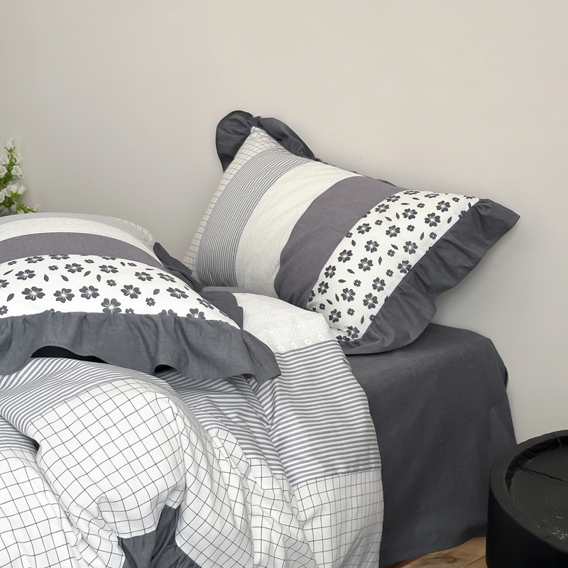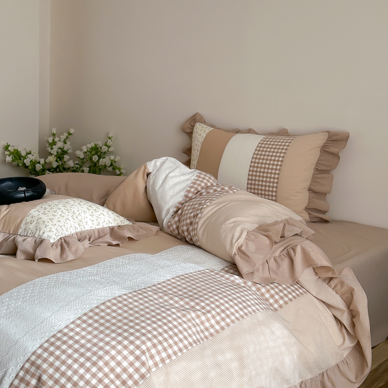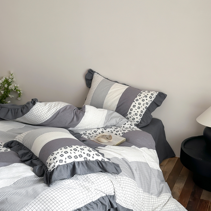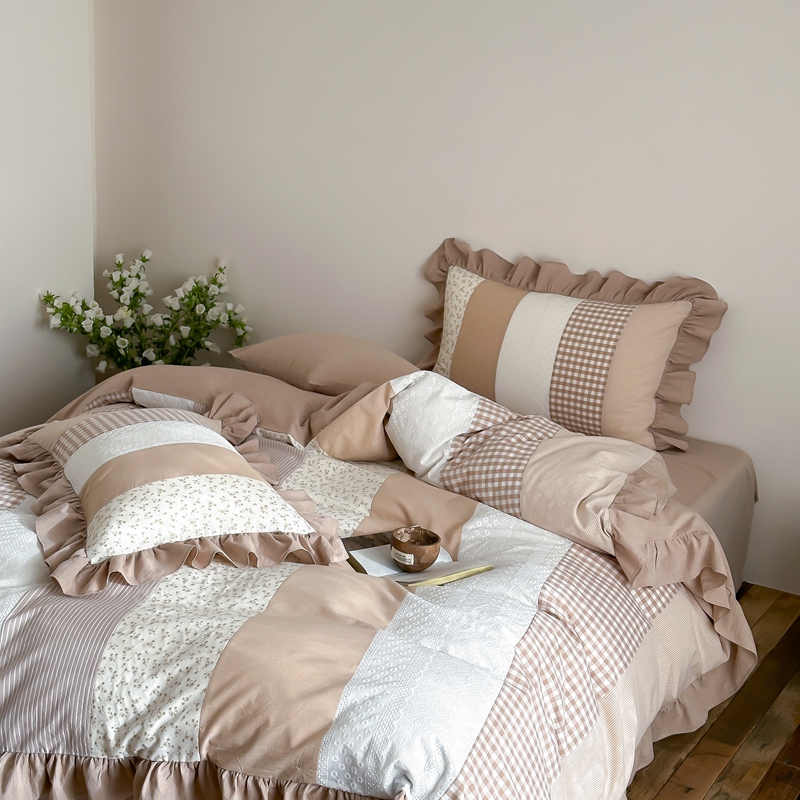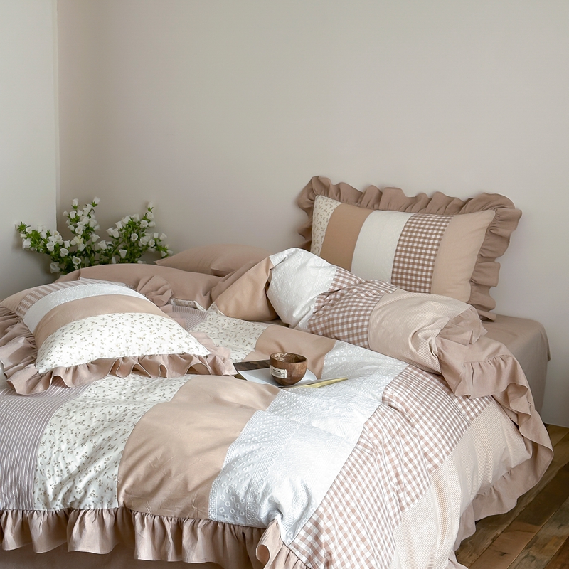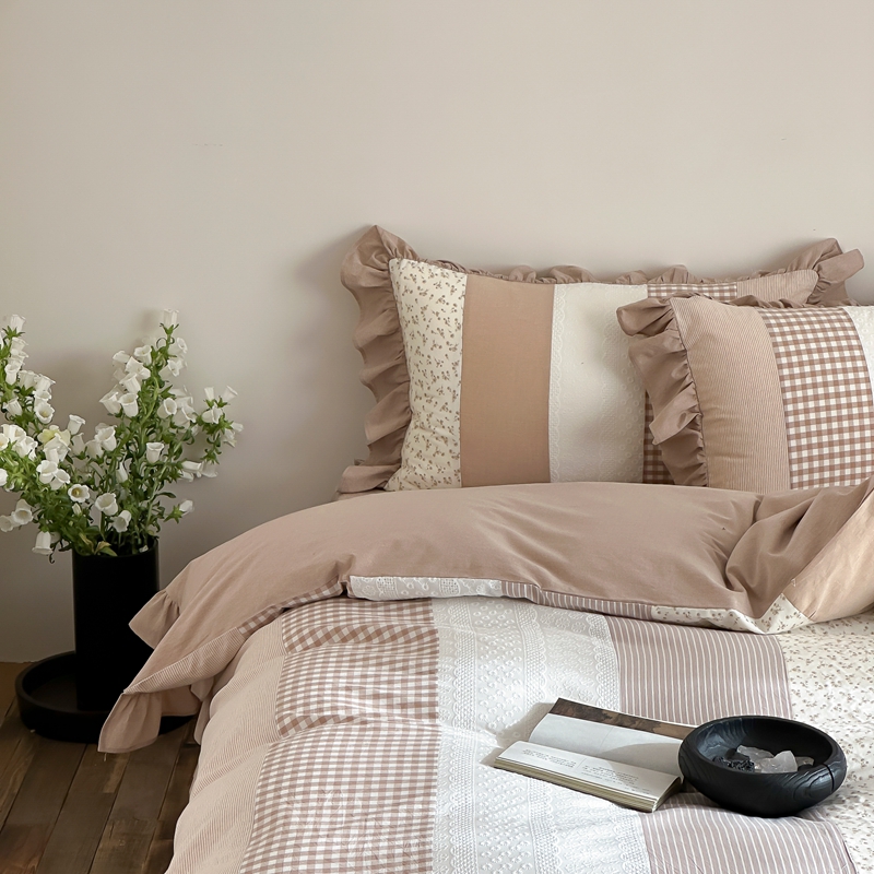 (总)旷野 2025新款空气层提花皱皱纱碎花边工艺款四件套-竹梦,竹梦