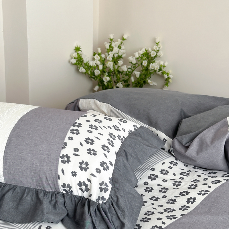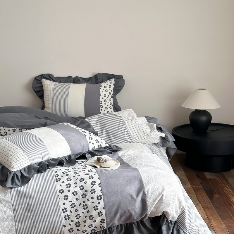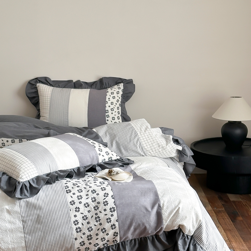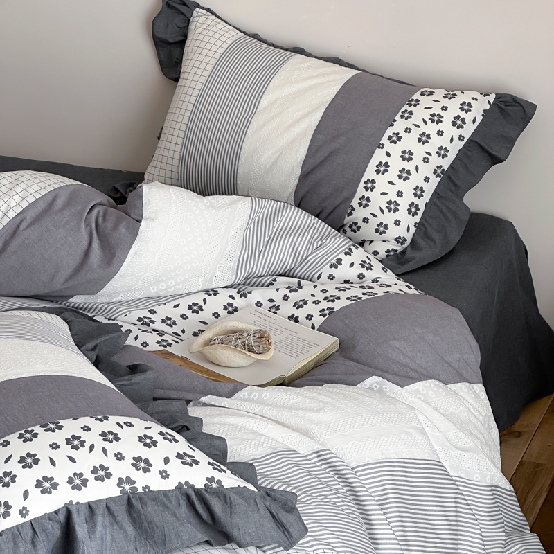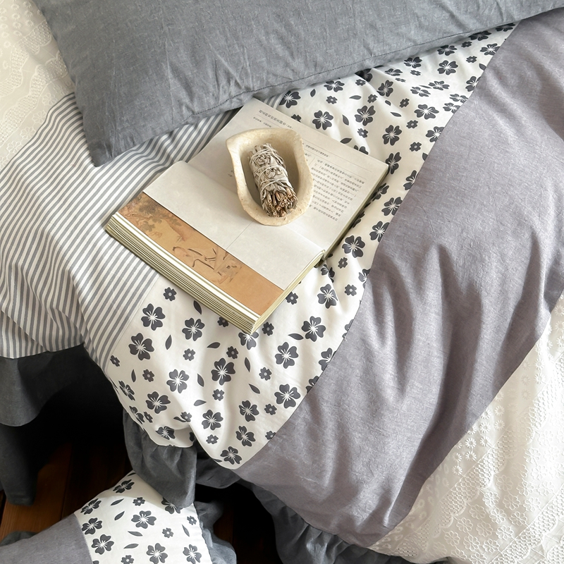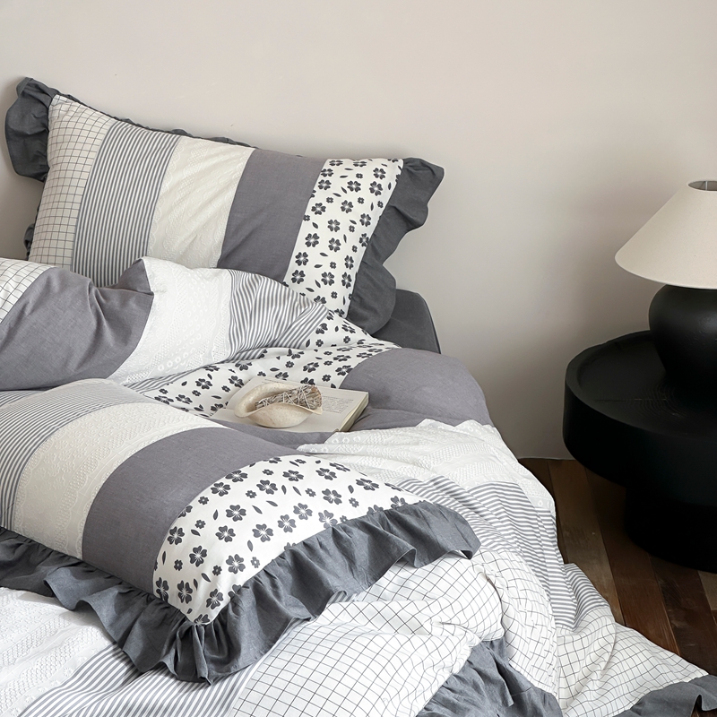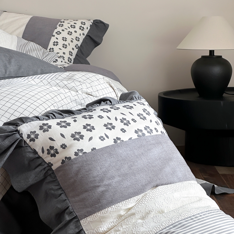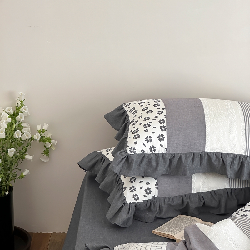 (总)旷野 2024双层纱碎花蕾丝拼接款四件套--柏林花事,柏林花事-粉,柏林花事-黑,柏林花事-奶咖