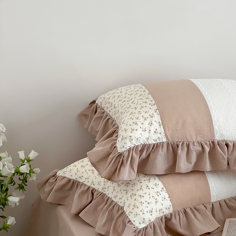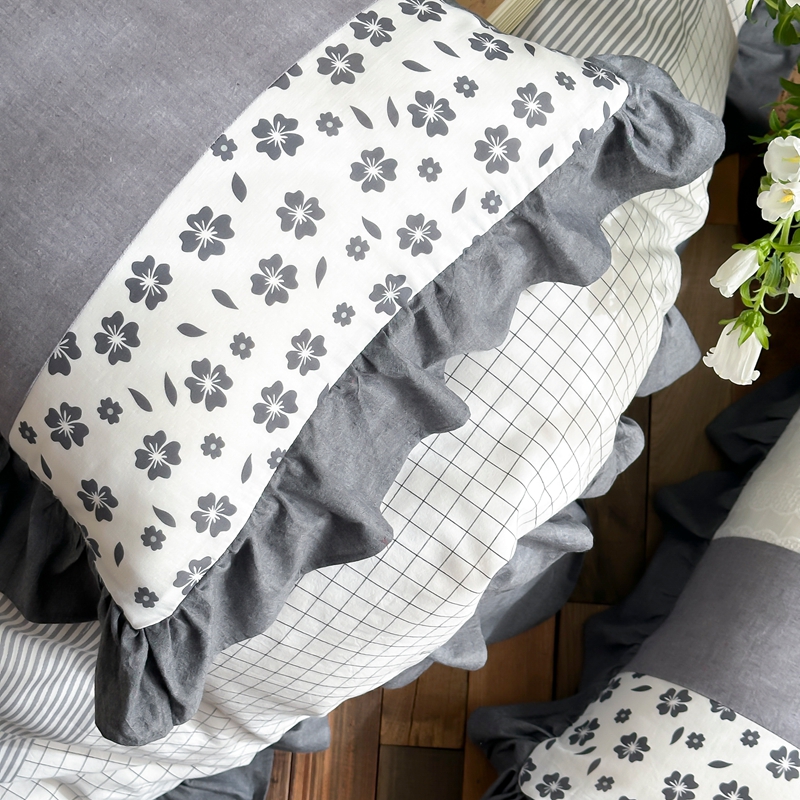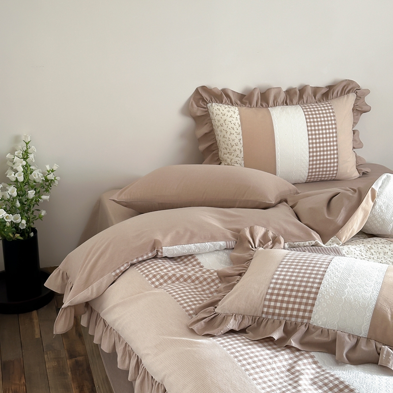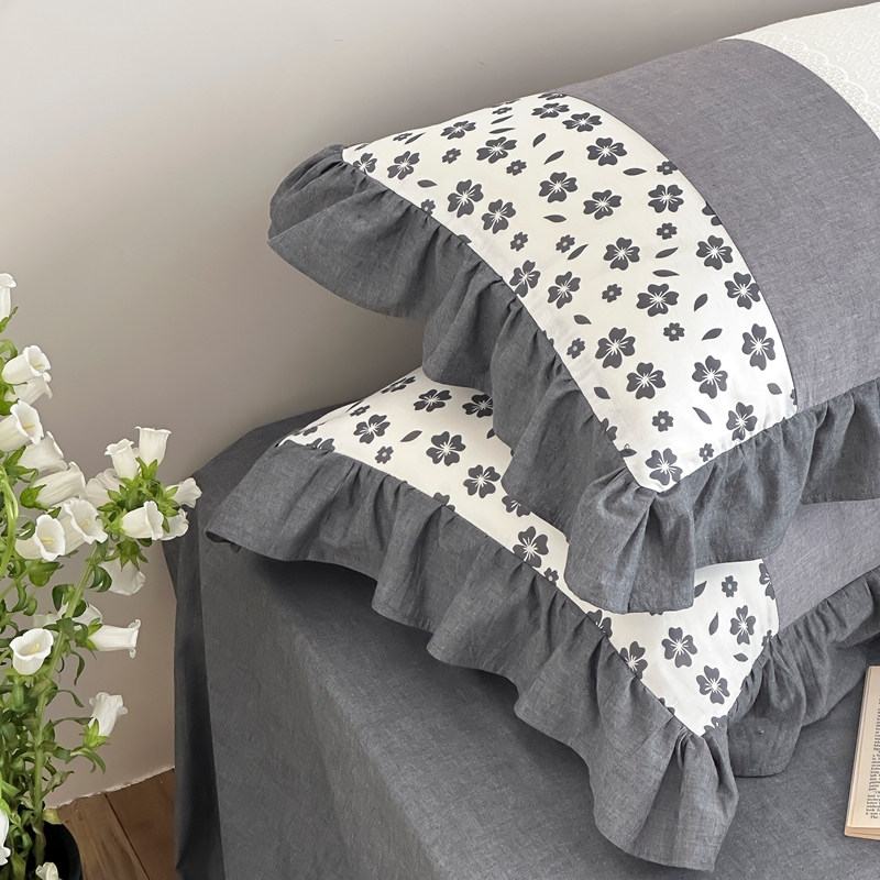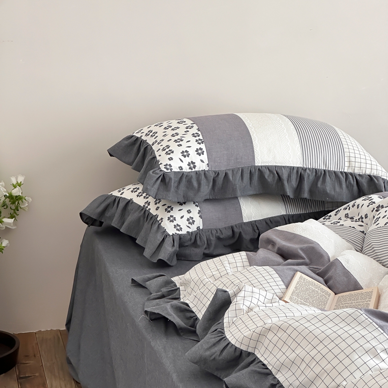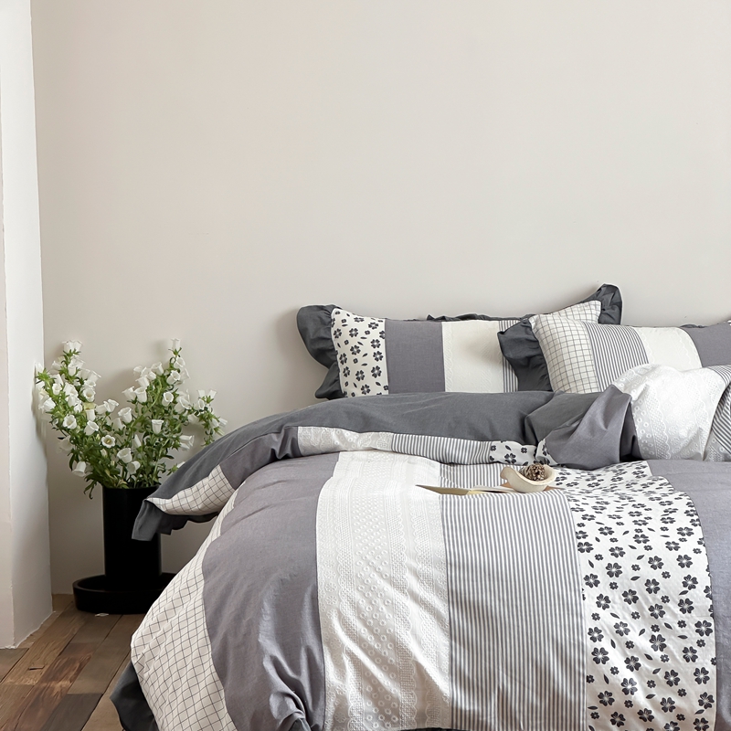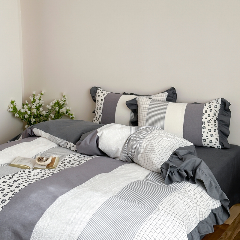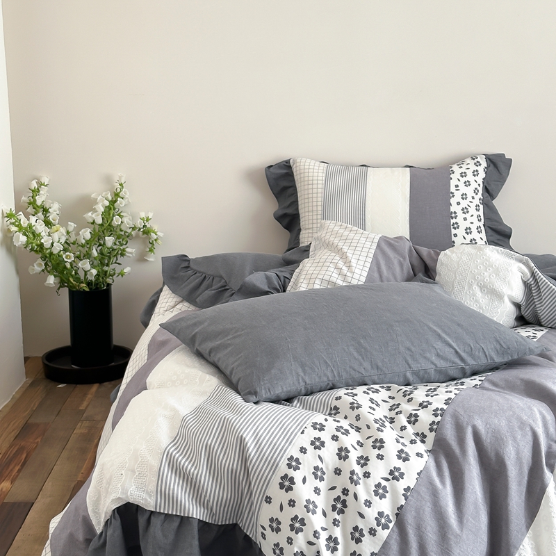 (总)旷野 2024双层纱碎花蕾丝拼接款四件套--柏林花事,柏林花事-粉,柏林花事-黑,柏林花事-奶咖
