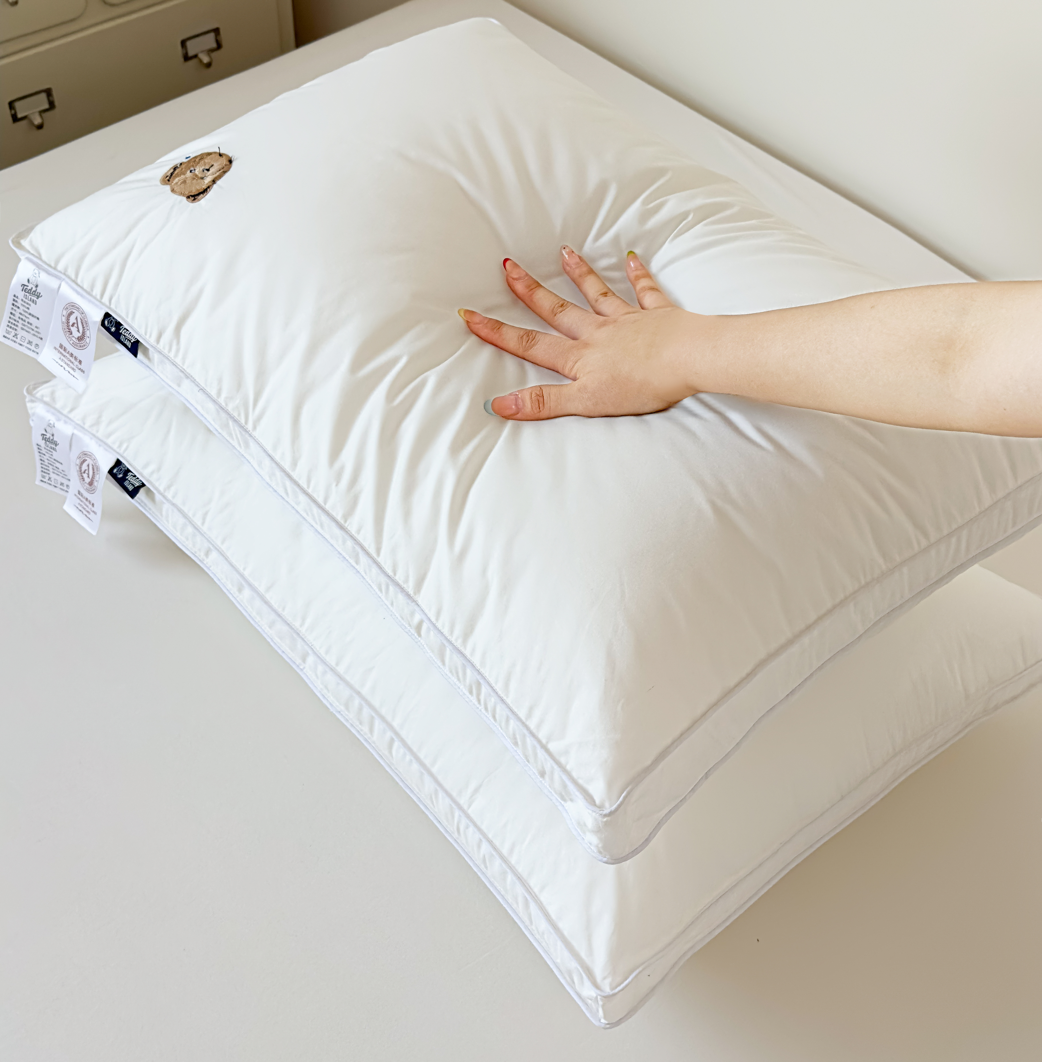 当前位置: 91家纺网 > 商品网购 > 枕头/枕芯/保健枕/颈椎枕 > 普通枕芯 > 泰迪爱兰Teddy 2026新款全棉立体压边款3D 大片羽丝绒 枕芯 低枕 650g