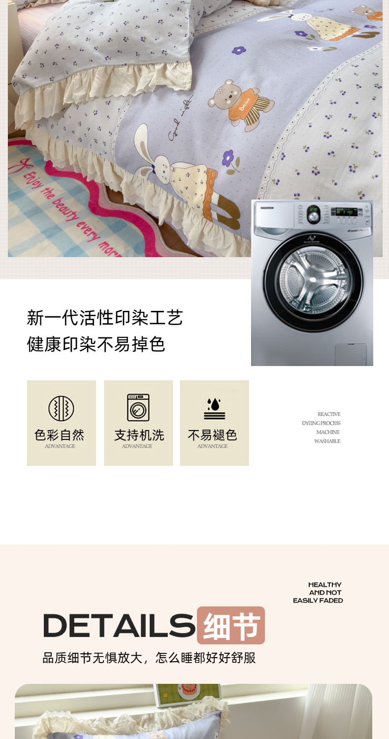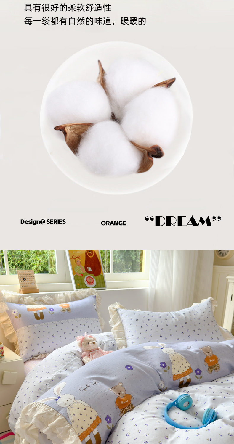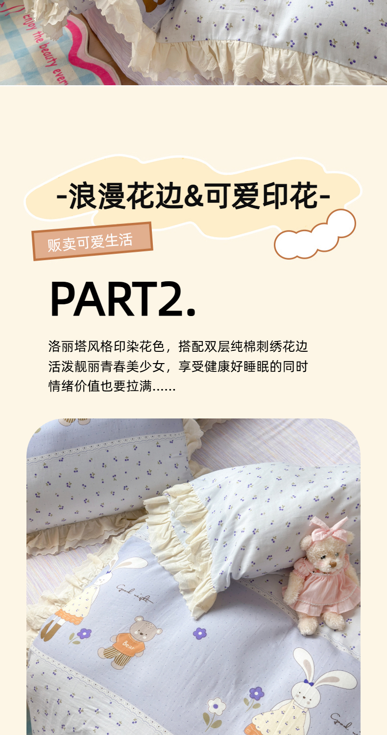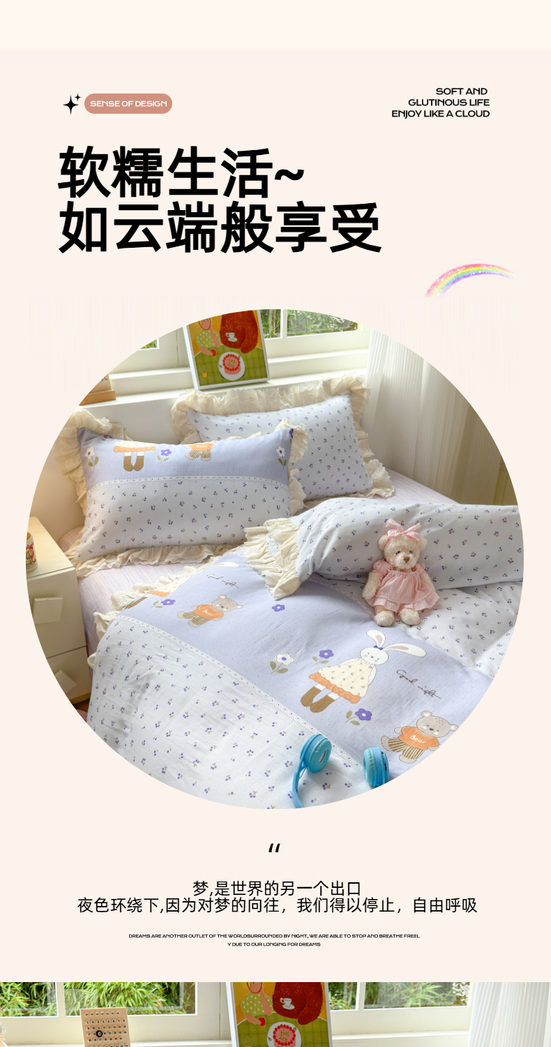 当前位置: 91家纺网 > 商品网购 > 床品套件 > 四件套 > 双层纱四件套 > 淑女公社家纺 2025新款全棉双层纱四季款洛丽塔风格四件套 兔小姐和小熊紫