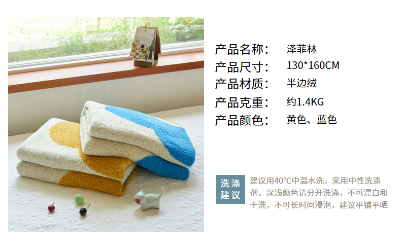 (总)暖绵绵家纺 2025新款亲肤舒适半边绒盖毯毛毯-泽菲林(最低零售价:173元),组合仅供参考,泽菲林-黄色,泽菲林-蓝色