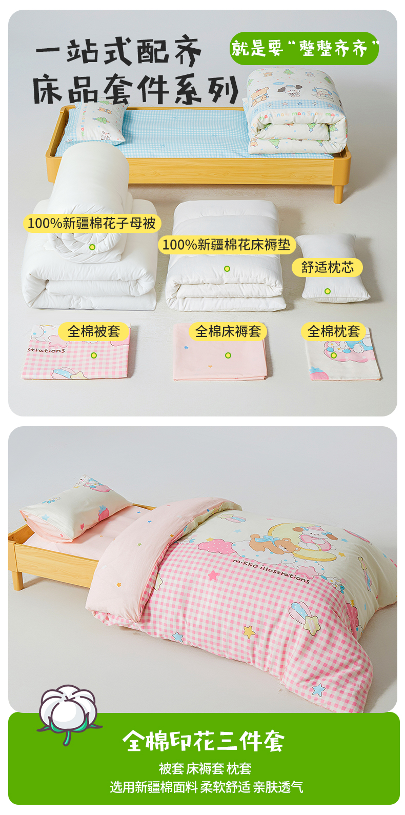 当前位置: 91家纺网 > 商品网购 > 床品套件 > 六件套 > 西域种棉人·千百笠 2025新款100%全棉幼儿园被子三件套被套纯棉儿童六件套宝宝入园专用被套被褥含芯七件套 默认三件套不送手提袋 其他组合都送
