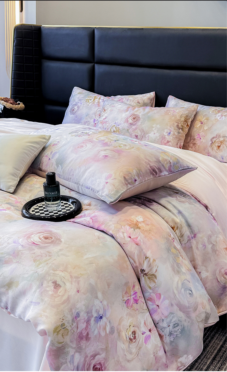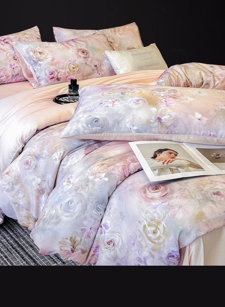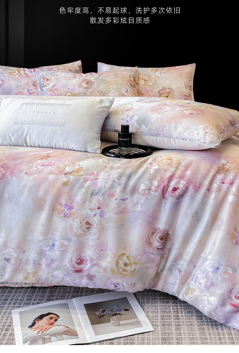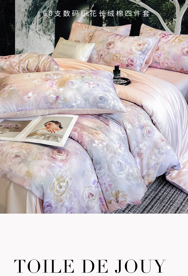 绒棉世家 2025新款60贡缎数码印花长绒棉全棉四件套 凡花