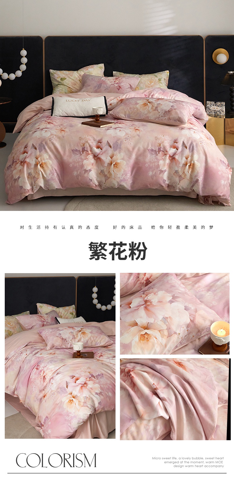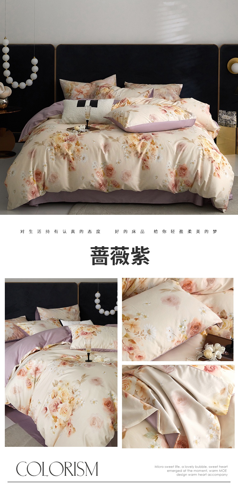 商品名称:绒棉世家 2025新款60贡缎数码印花长绒棉全棉四件套 凡花