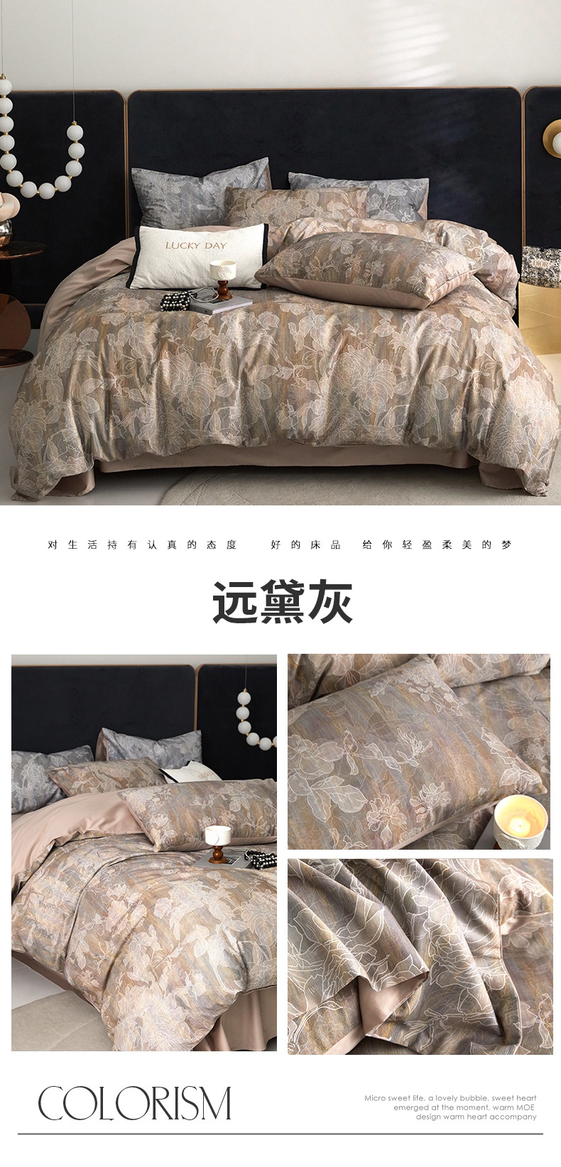 (总)绒棉世家 2025新款20%亚麻80%棉棉麻提花四件套,花韵-粉,花韵-灰