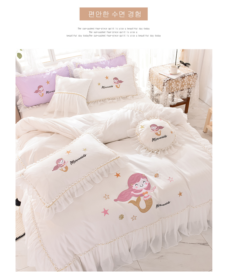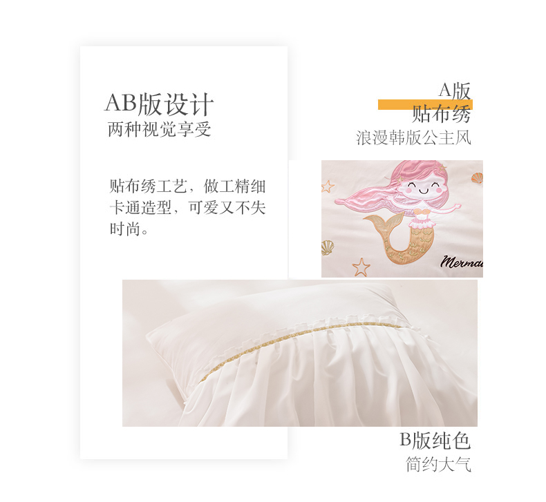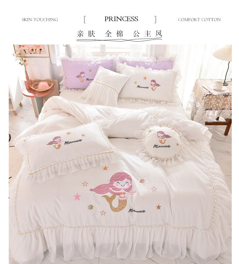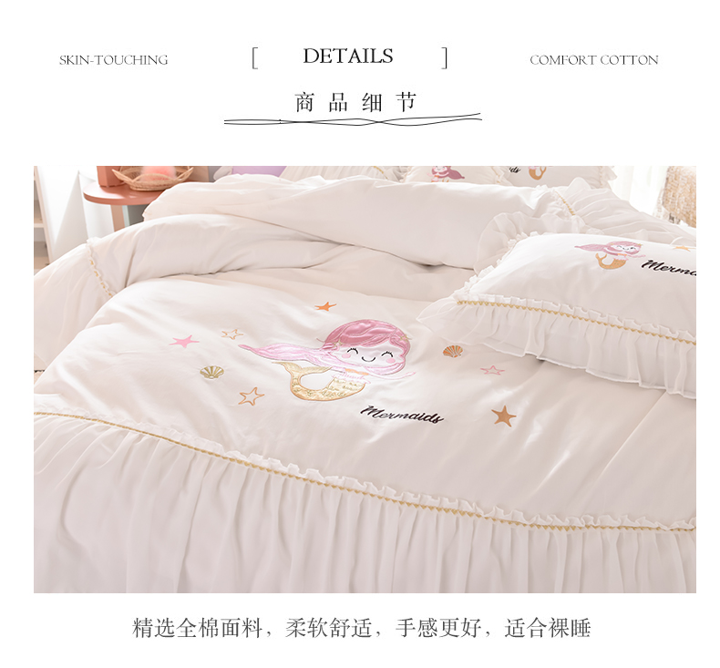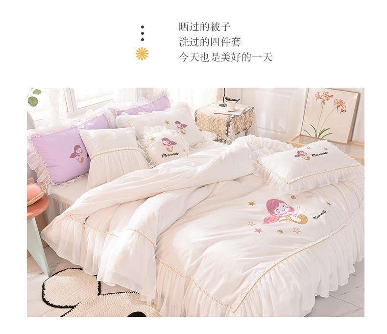 商品名称:花香四季家纺 2025新款13376纯棉贴布刺绣雪纺纱四件套-人鱼小姐 人鱼小姐白