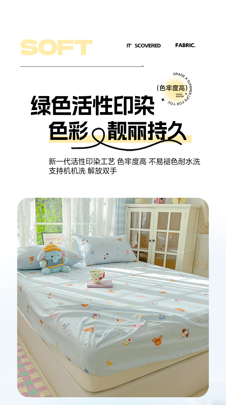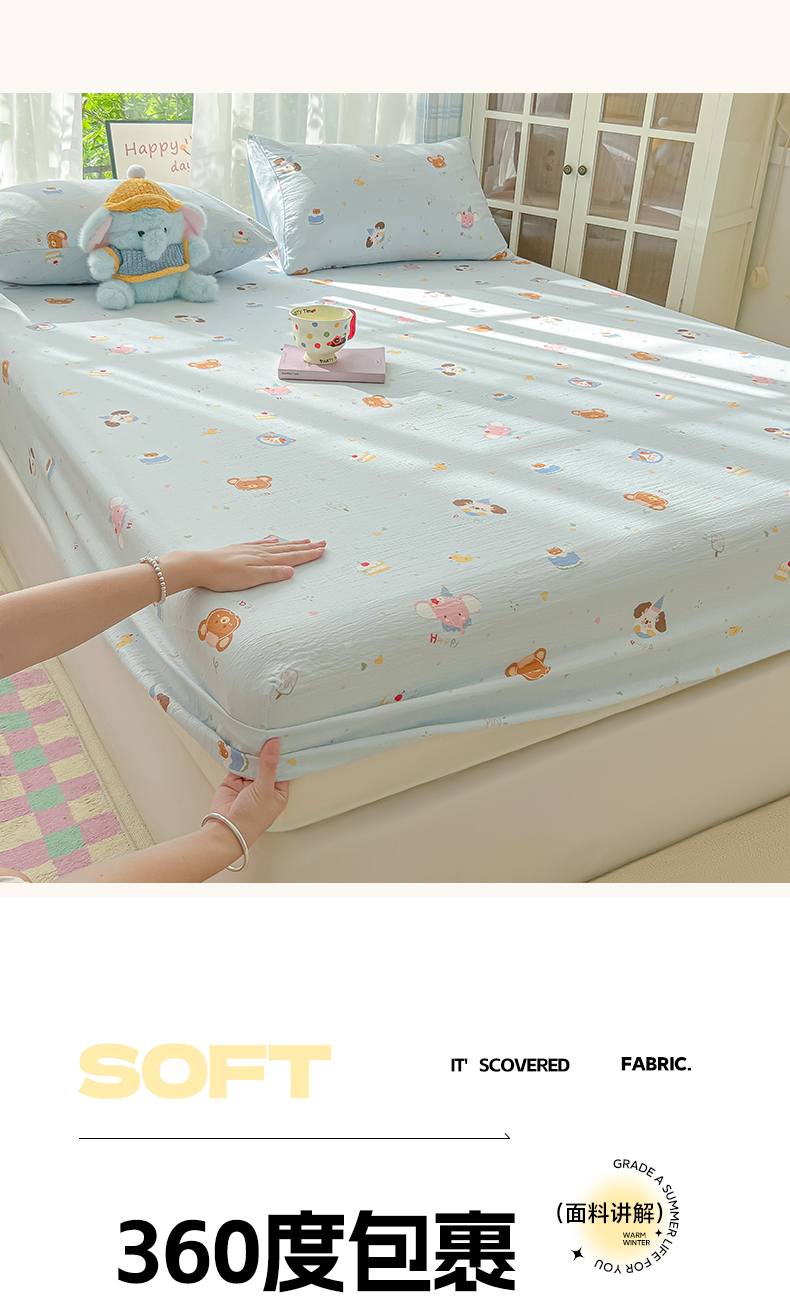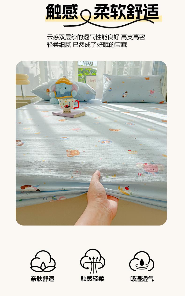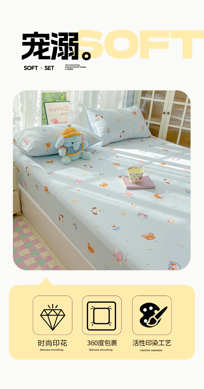• 91家纺网 家纺一手货源 找家纺 韩巢家纺 2025新款卡通双层纱床笠单品床笠床笠单件热销款防滑床单床套枕套三件套 生日宴会兰