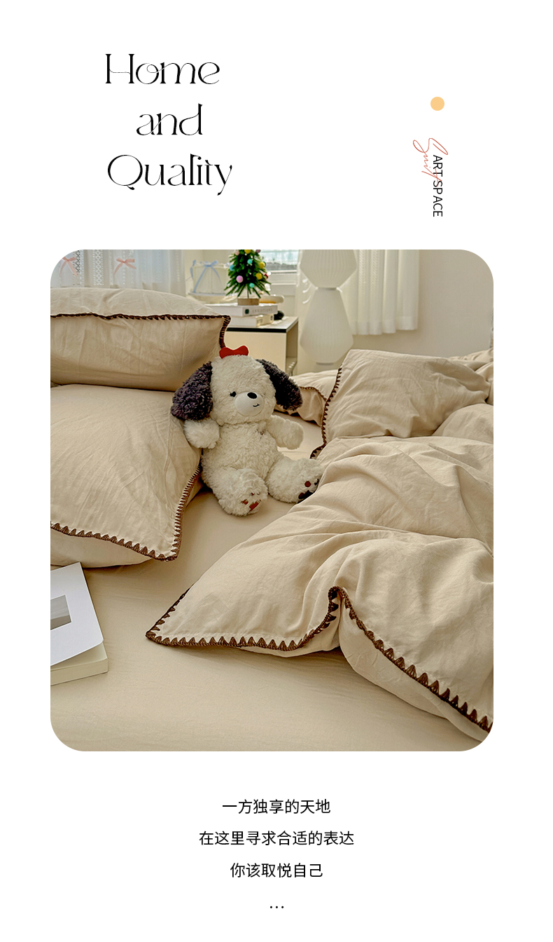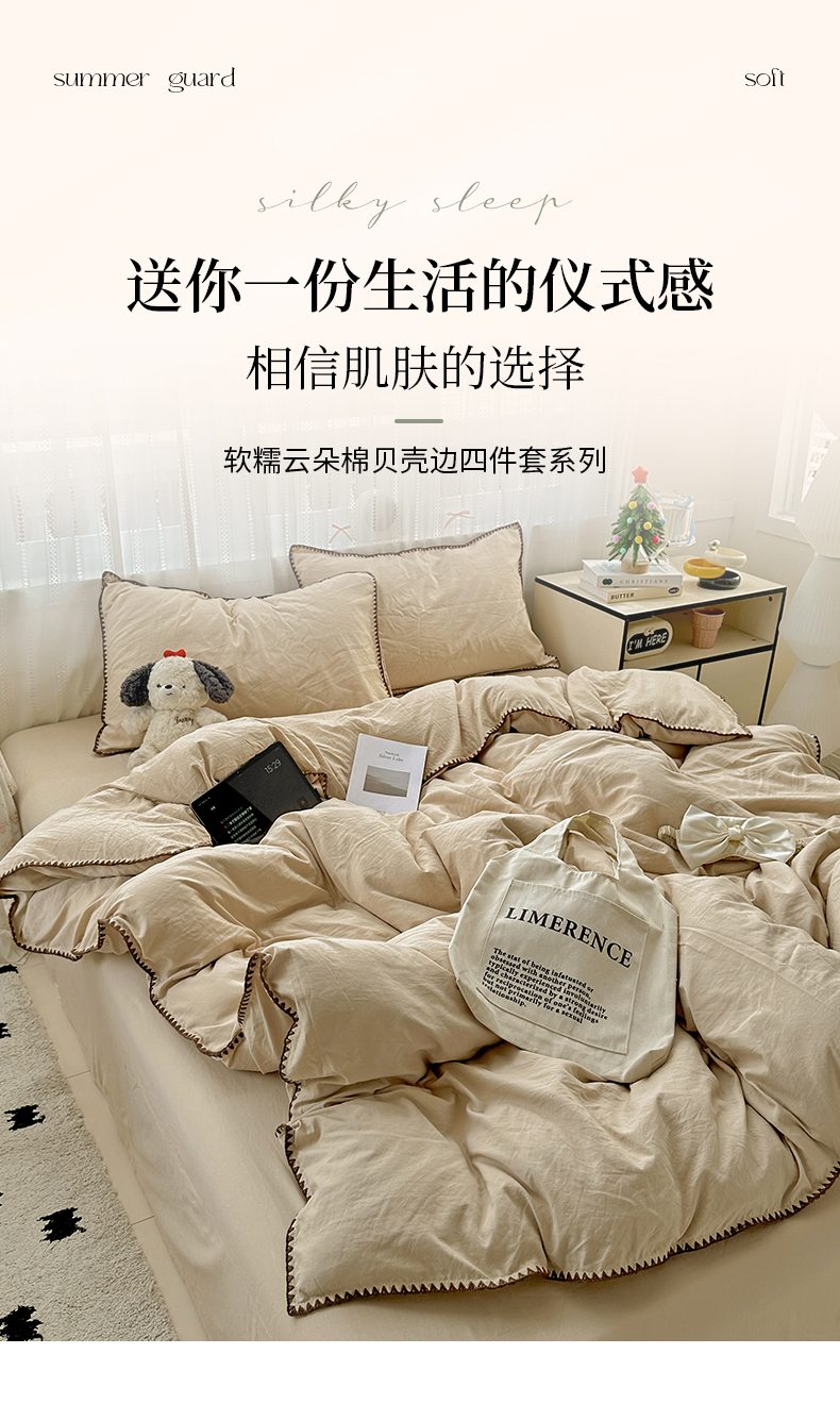 当前位置: 91家纺网 > 商品网购 > 床品套件 > 四件套 > 其它四件套 > 繁花家居 2025新款高克重云朵棉贝壳边系列四件套 绵绵-茶棕