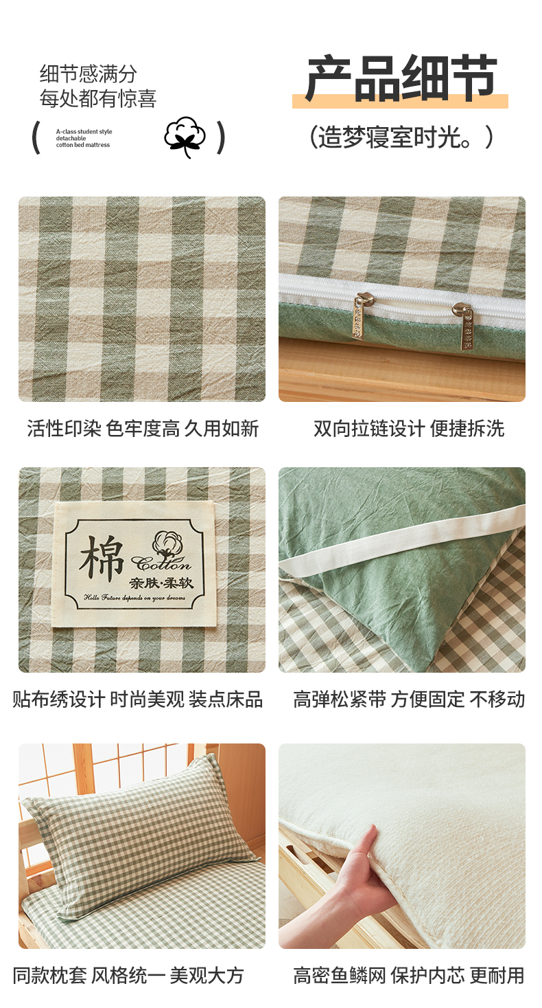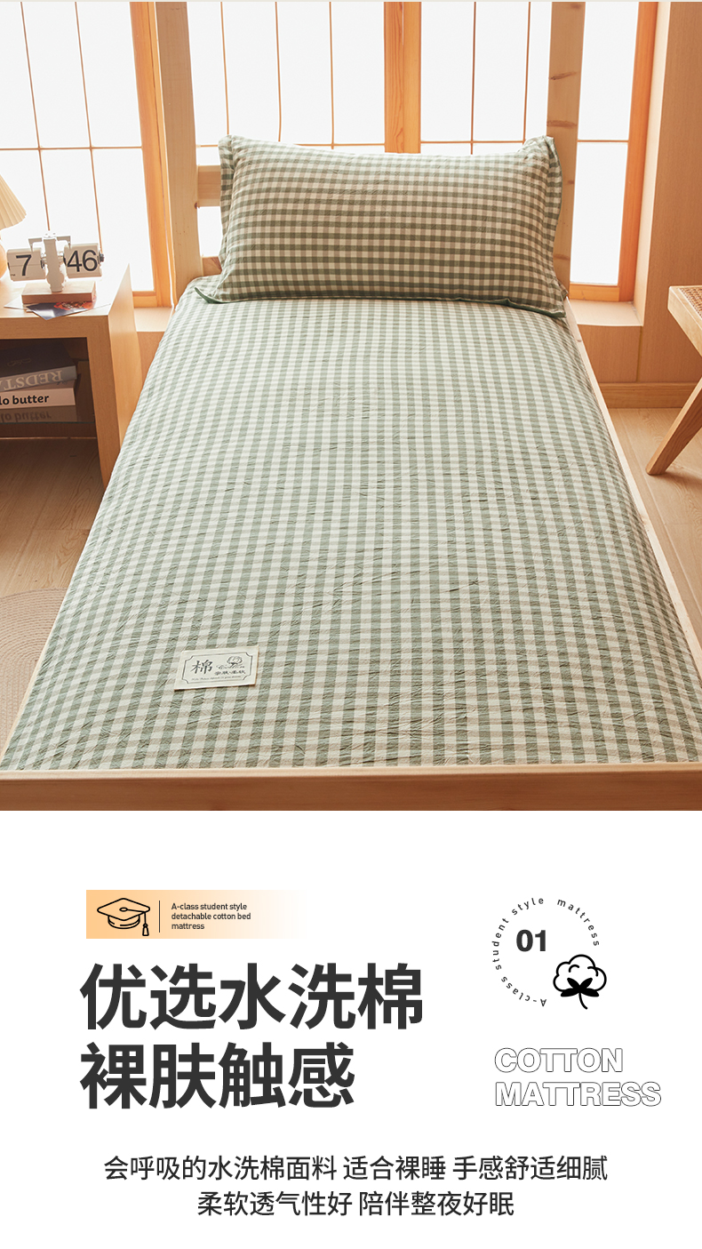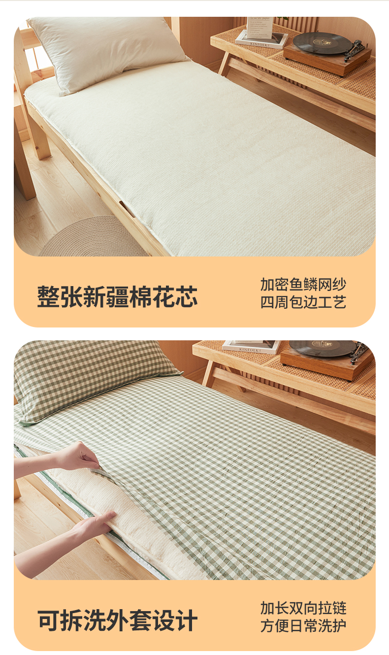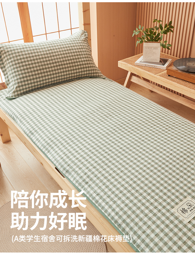 当前位置: 91家纺网 > 商品网购 > 床垫/床褥 > 普通床垫 > 西域种棉人·千百笠 2025新款A类可拆卸里外全棉100%新疆棉花被子冬被全棉单人学生宿舍加厚保暖春秋被芯被套棉被 褥子-水洗棉绿小格