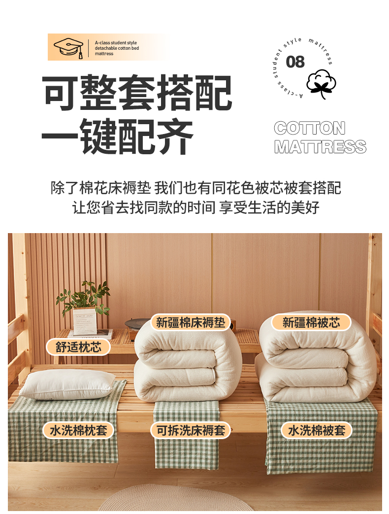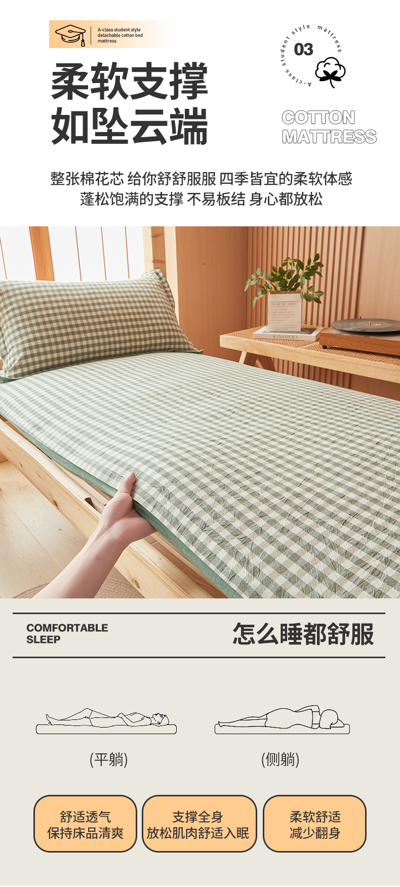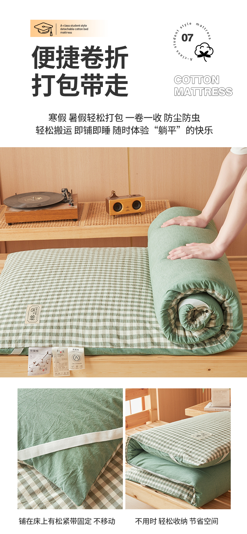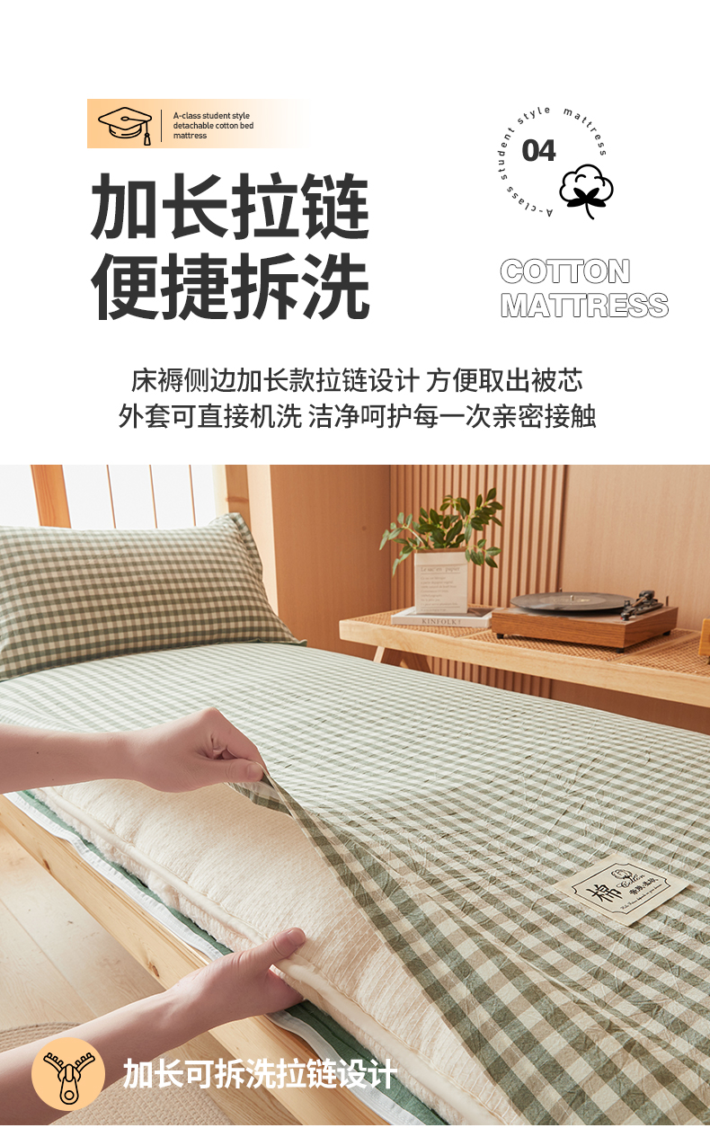 当前位置: 91家纺网 > 商品网购 > 床垫/床褥 > 普通床垫 > 西域种棉人·千百笠 2025新款A类可拆卸里外全棉100%新疆棉花被子冬被全棉单人学生宿舍加厚保暖春秋被芯被套棉被 褥子-水洗棉绿小格