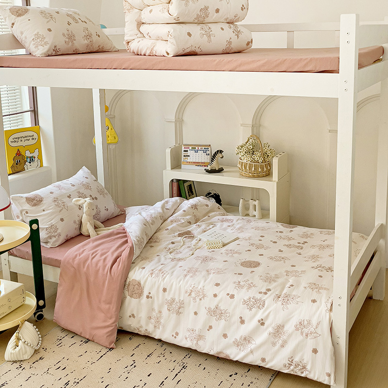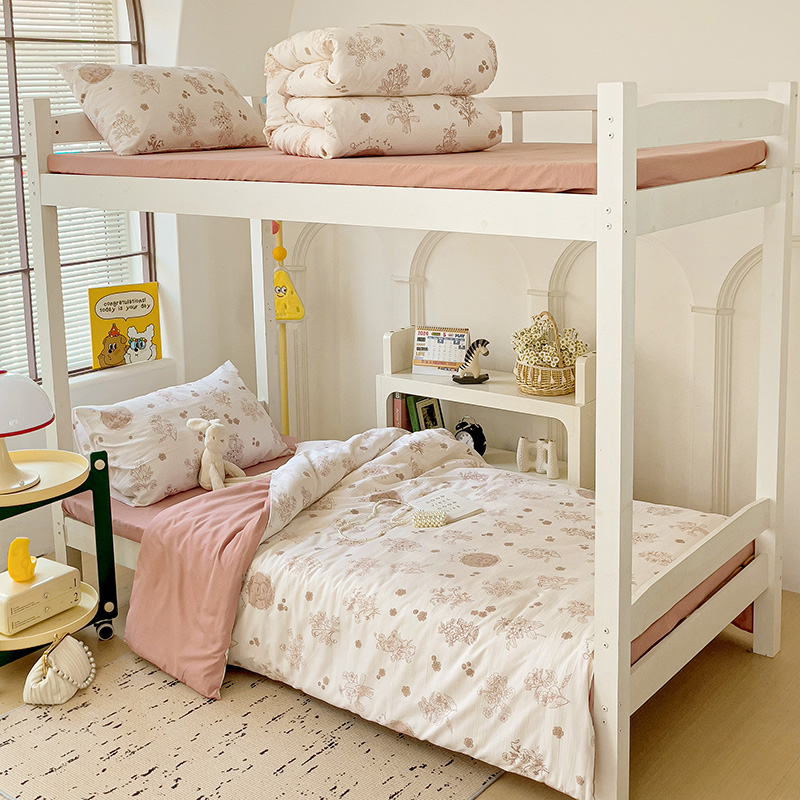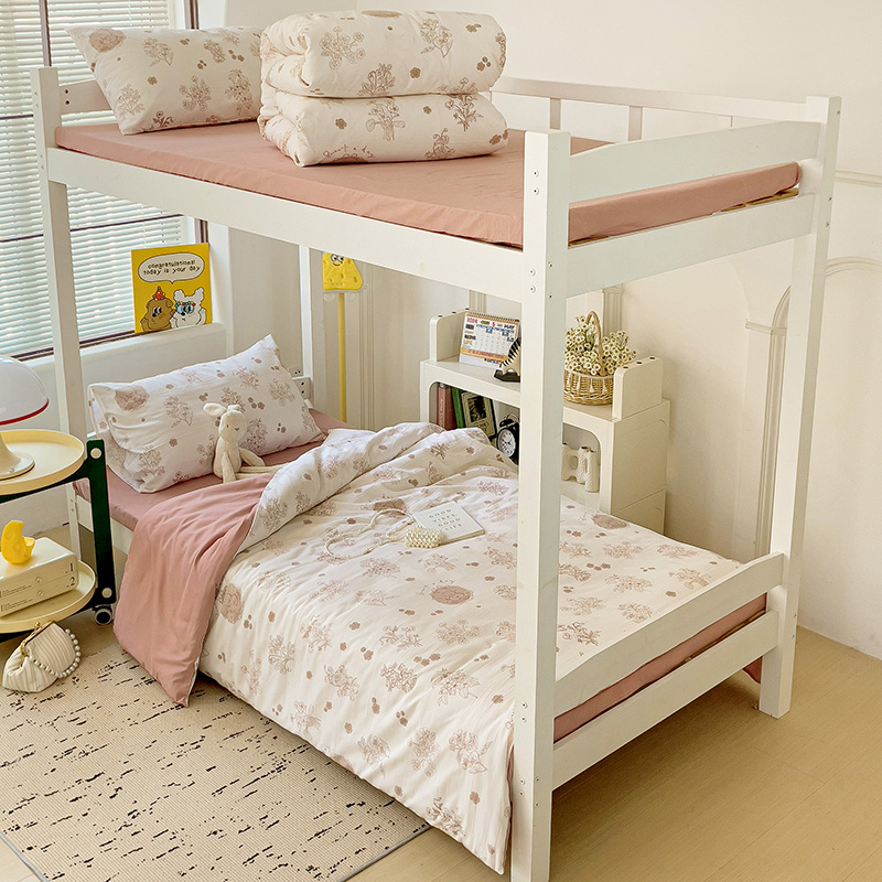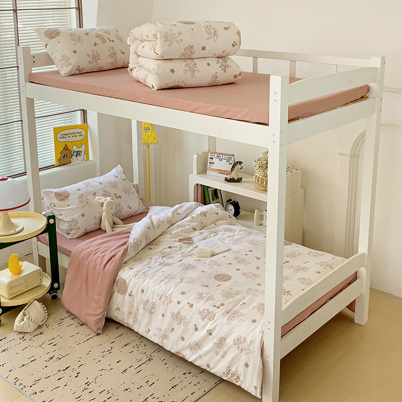 海岛哥哥 2025新款云朵水洗棉学生床宿舍上下铺三件套 爱意浓