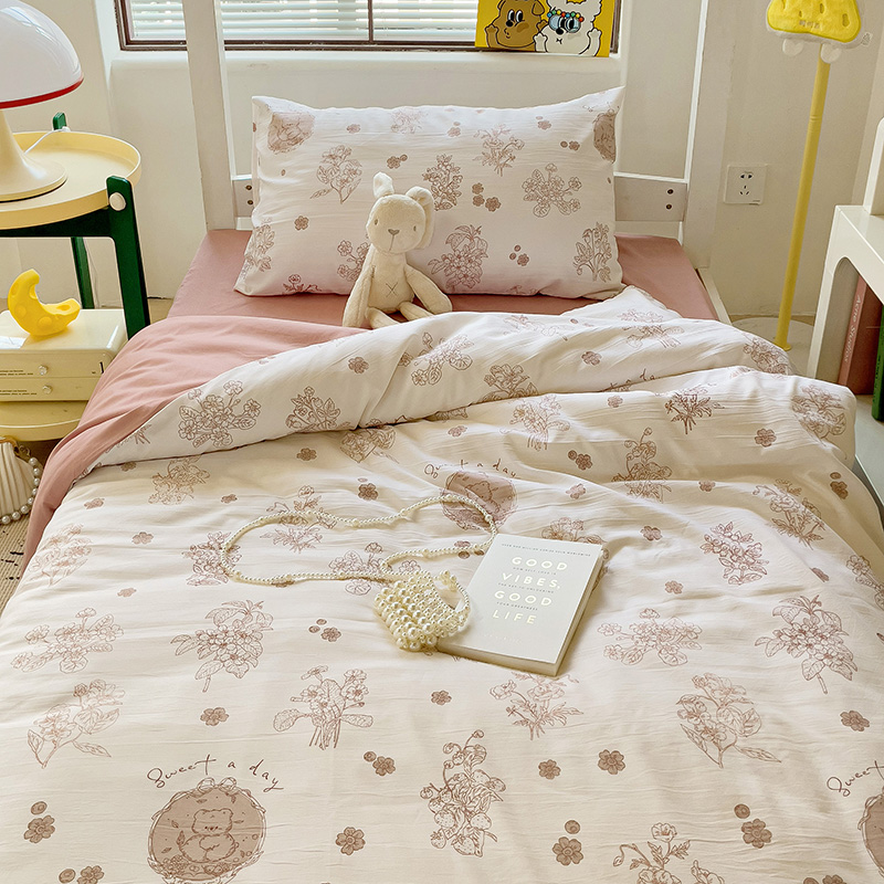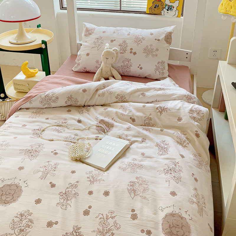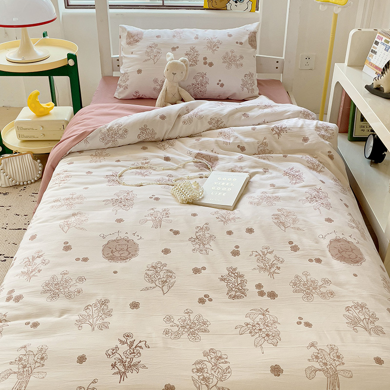 商品名称:海岛哥哥 2025新款云朵水洗棉学生床宿舍上下铺三件套 爱意浓