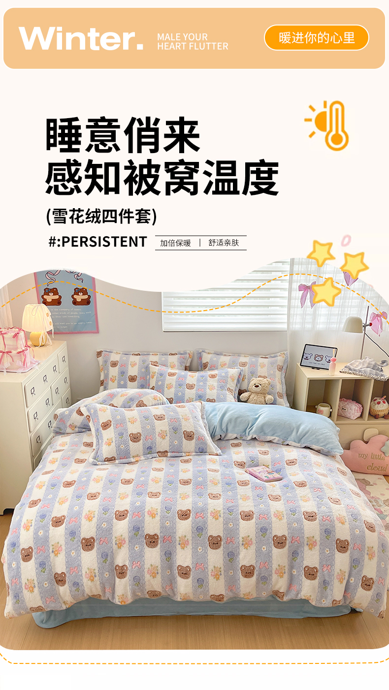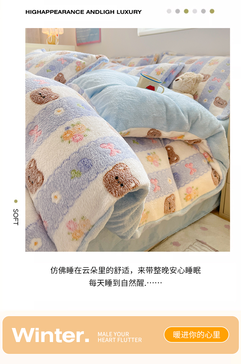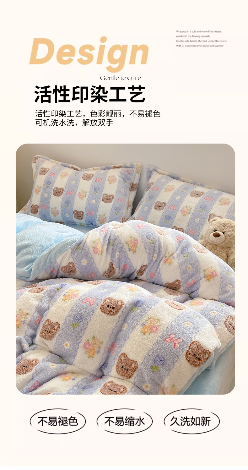 当前位置: 91家纺网 > 商品网购 > 床品套件 > 四件套 > 其它四件套 > 川悦生活 2025新款立体雪花绒印花大床四件套系列一场景一 小熊花园