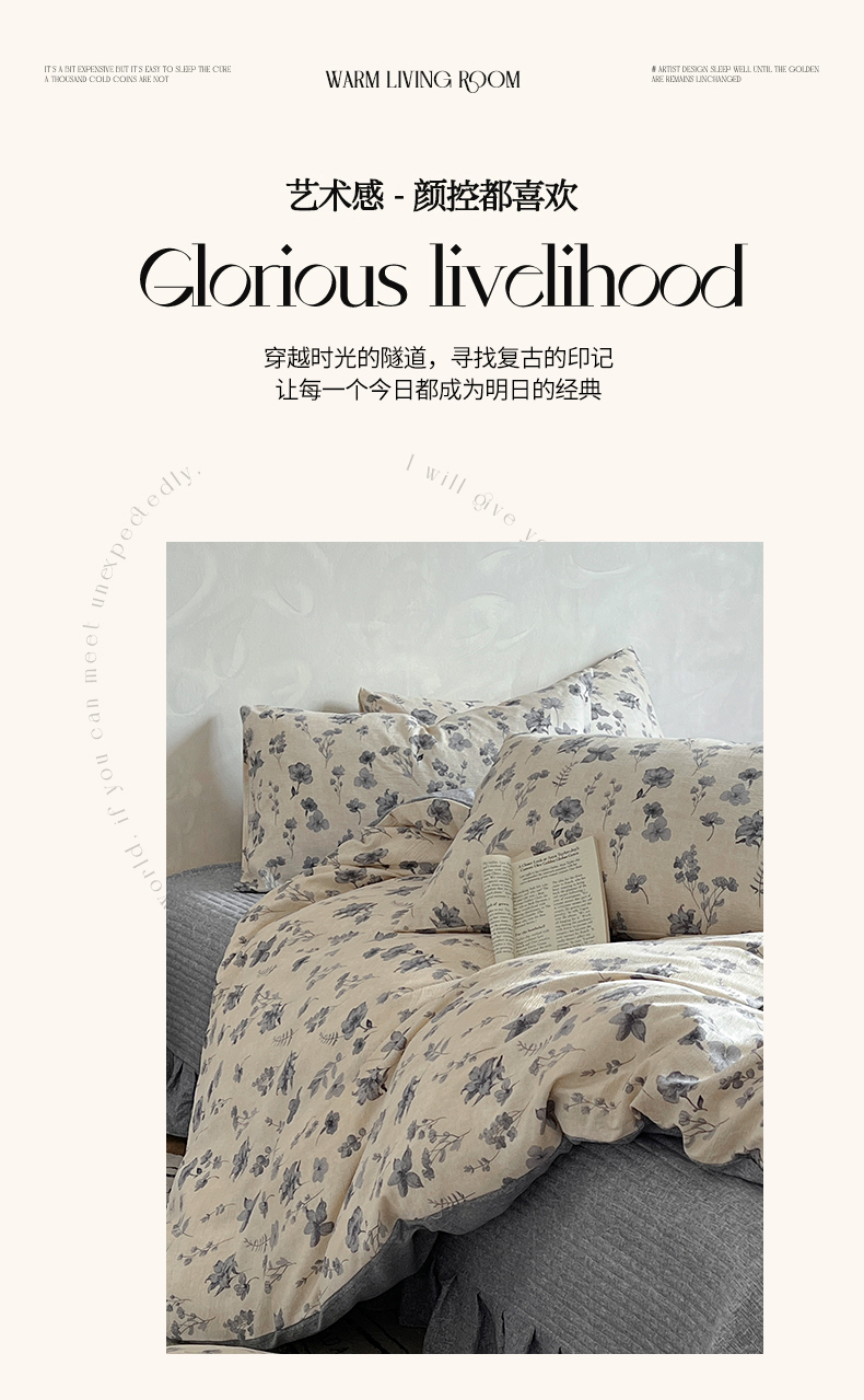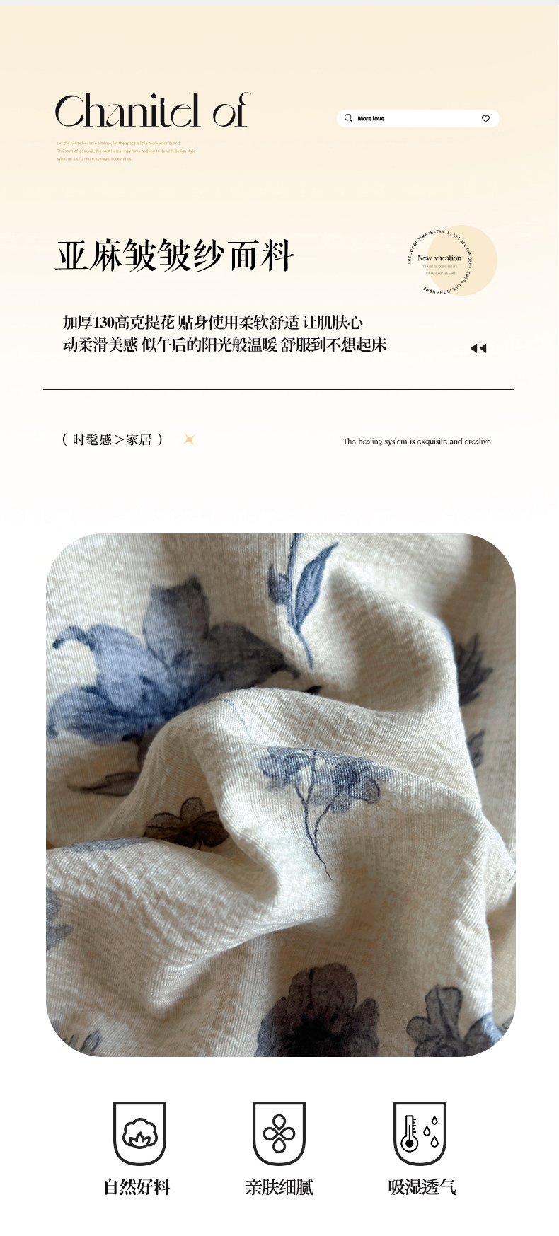 美梦家纺 2025新款高克重加厚亚麻皱皱纱床盖四件套系列(提供买家秀) 莫兰