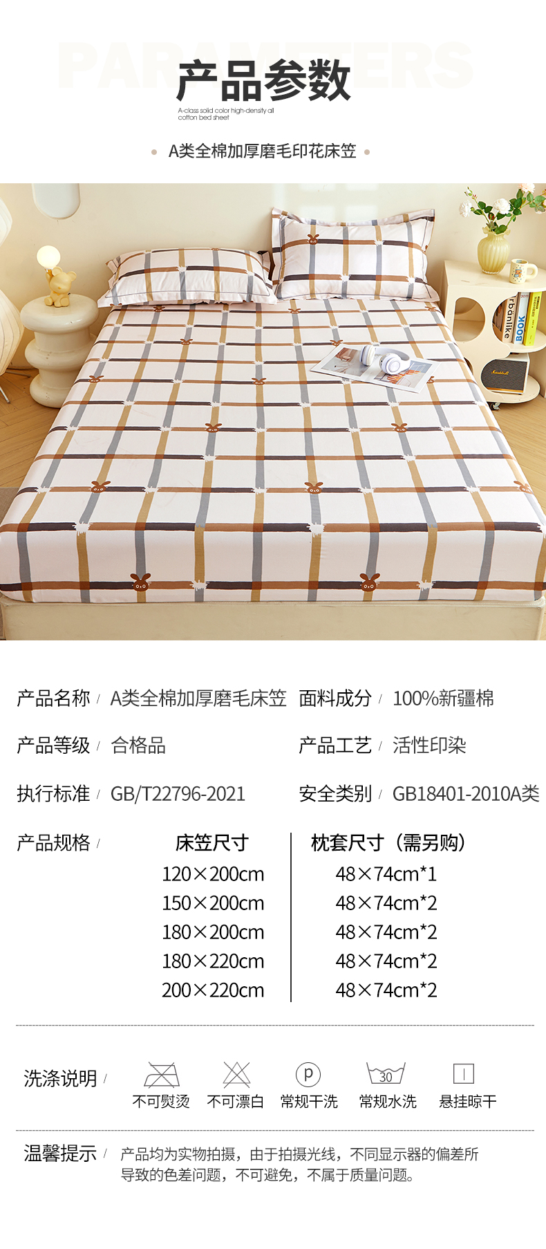 120x200cm单床笠+枕套一对