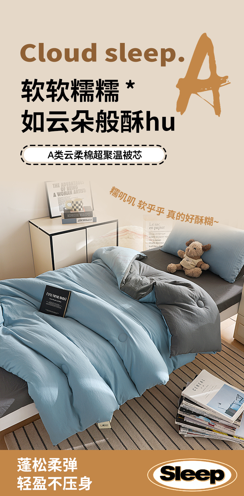 当前位置: 91家纺网 > 商品网购 > 被子 > 冬被 > 益多眠 2026新款双拼云朵被被子被芯 双拼系列-天蓝+深灰