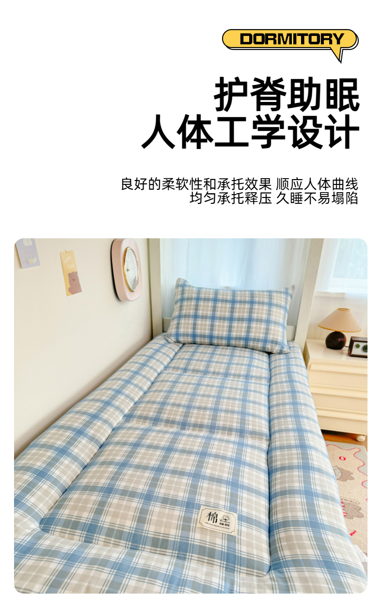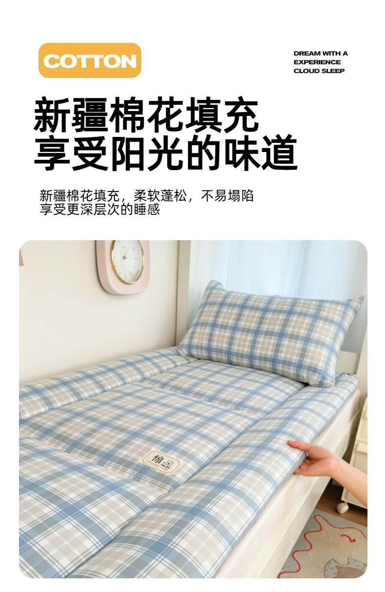 商品名称:美宜家 2025新款无印风学生棉花床垫母婴类新疆棉花床垫子软垫家用宿舍床褥垫被单双人出租屋铺底 柠夏兰