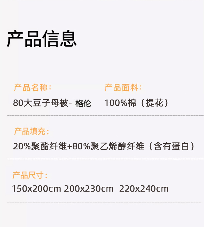 150x200cm子被3.5斤+母被5.0斤 | ¥350.00 |