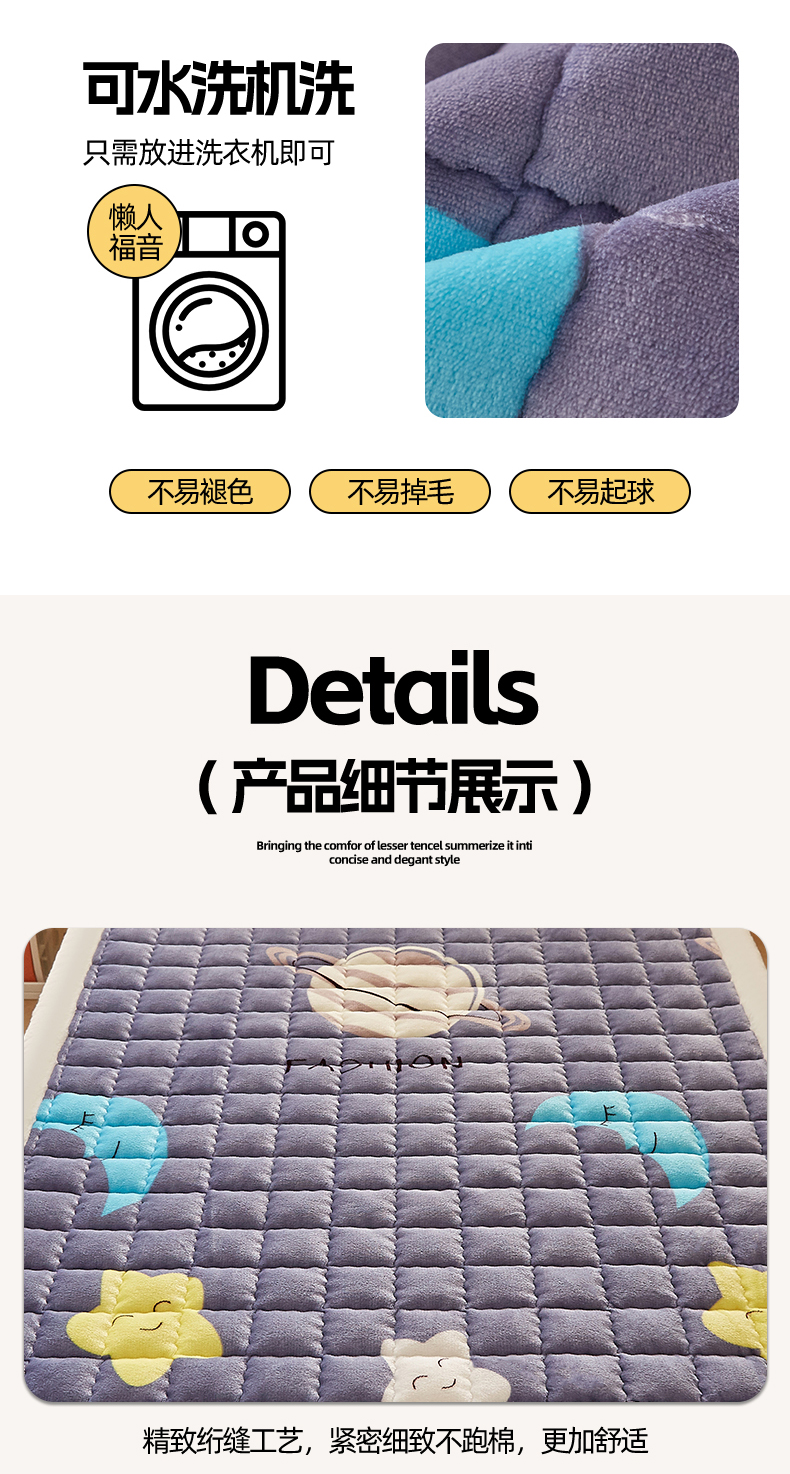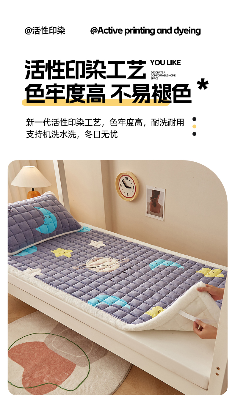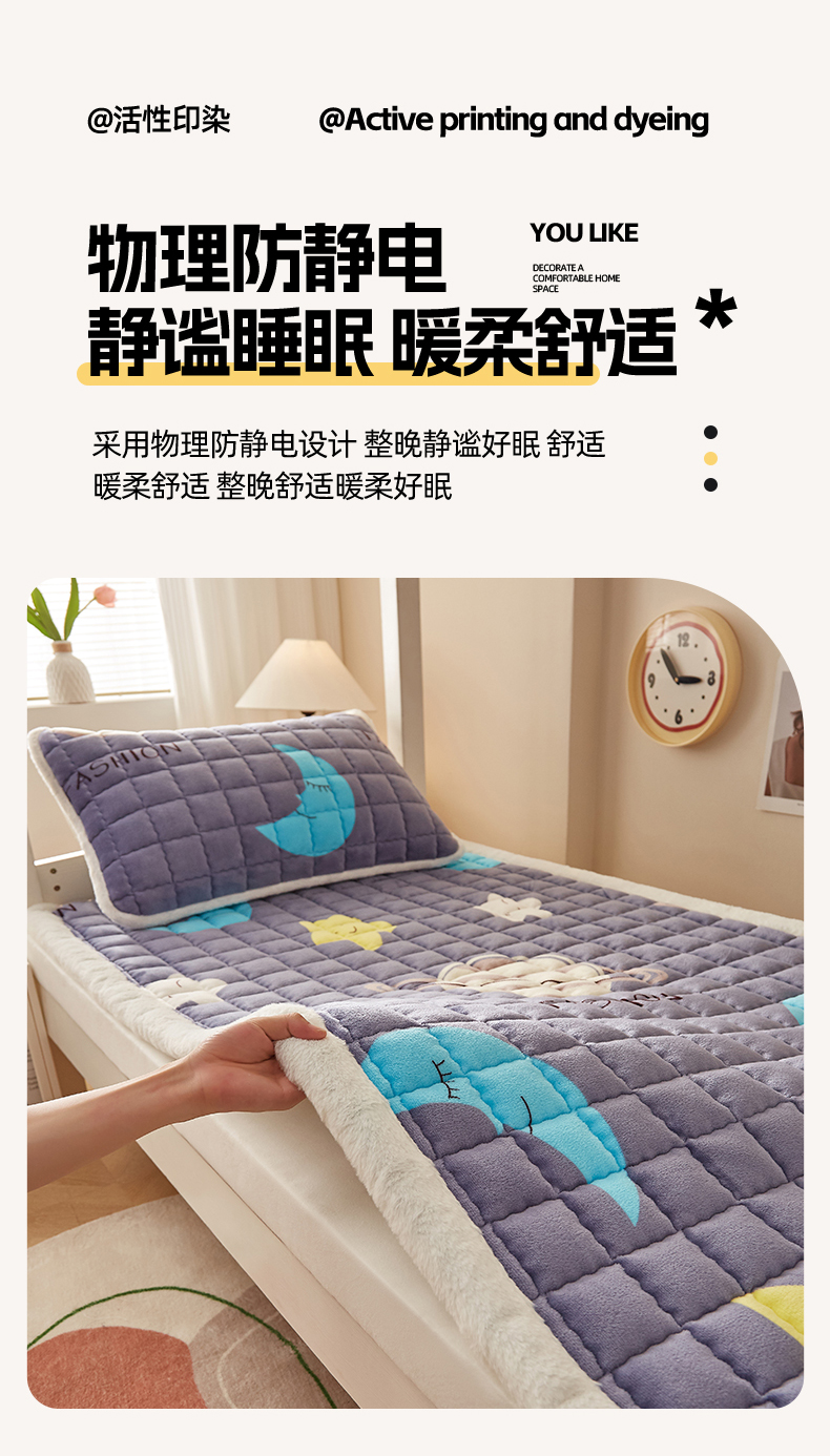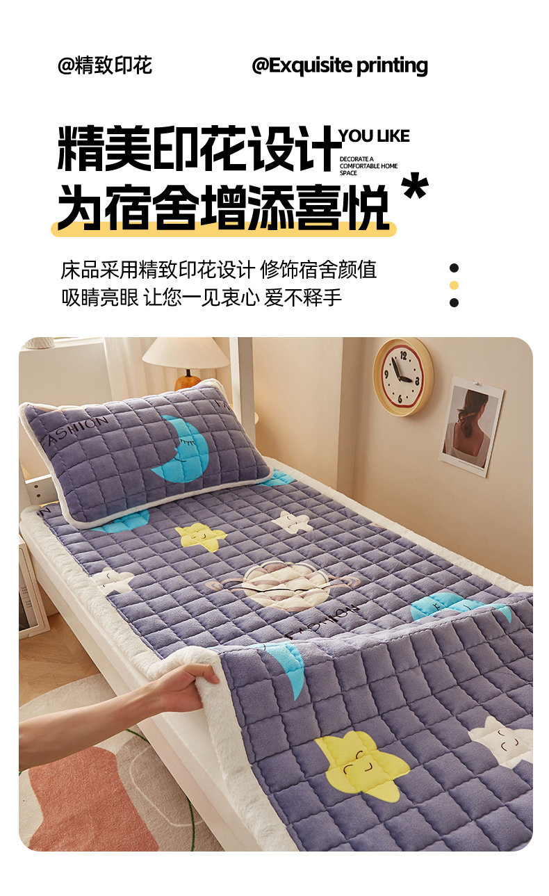 当前位置: 91家纺网 > 商品网购 > 床垫/床褥 > 普通床垫 > 东宇床垫 2025新款A类牛奶绒印花直角防滑床垫床褥三件套-学生款 星球明月
