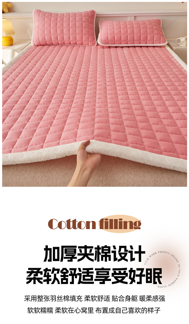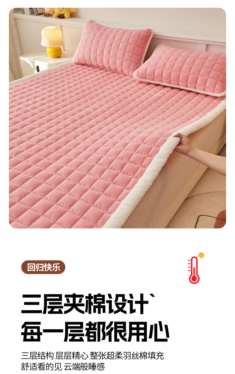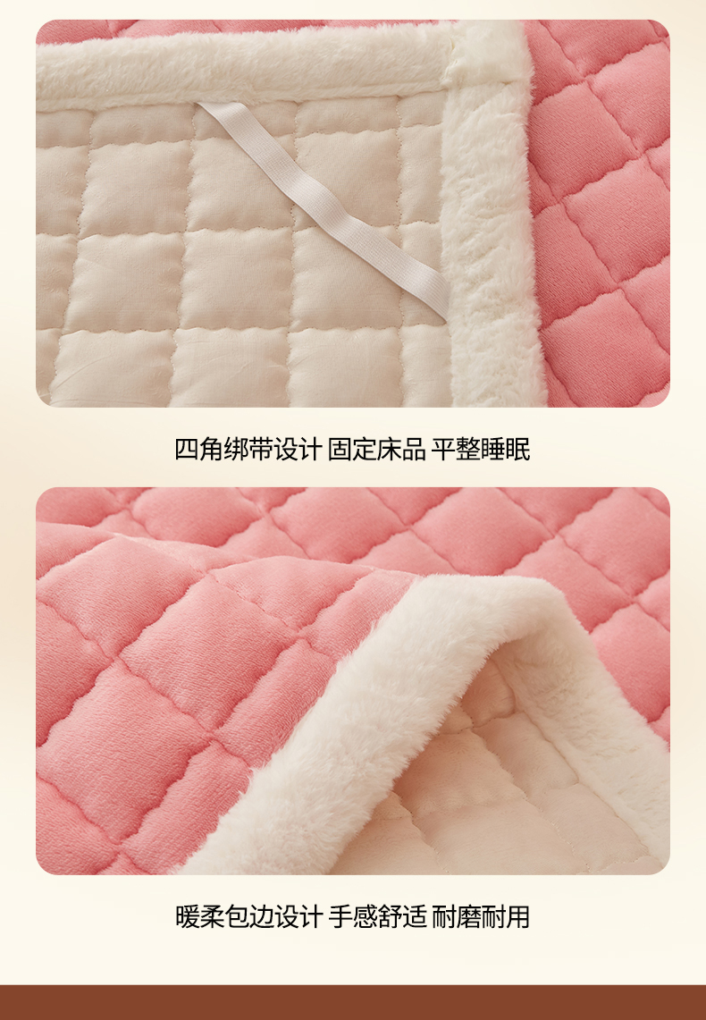 当前位置: 91家纺网 > 商品网购 > 床垫/床褥 > 普通床垫 > 东宇床垫 2025新款A类牛奶绒印花直角防滑床垫床褥三件套-成人款 粉格甜心