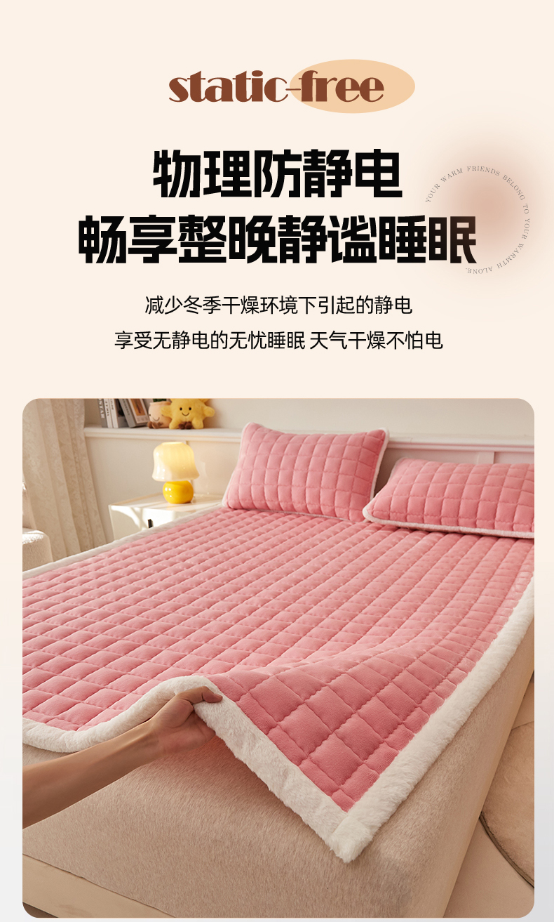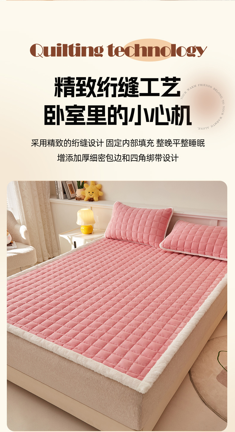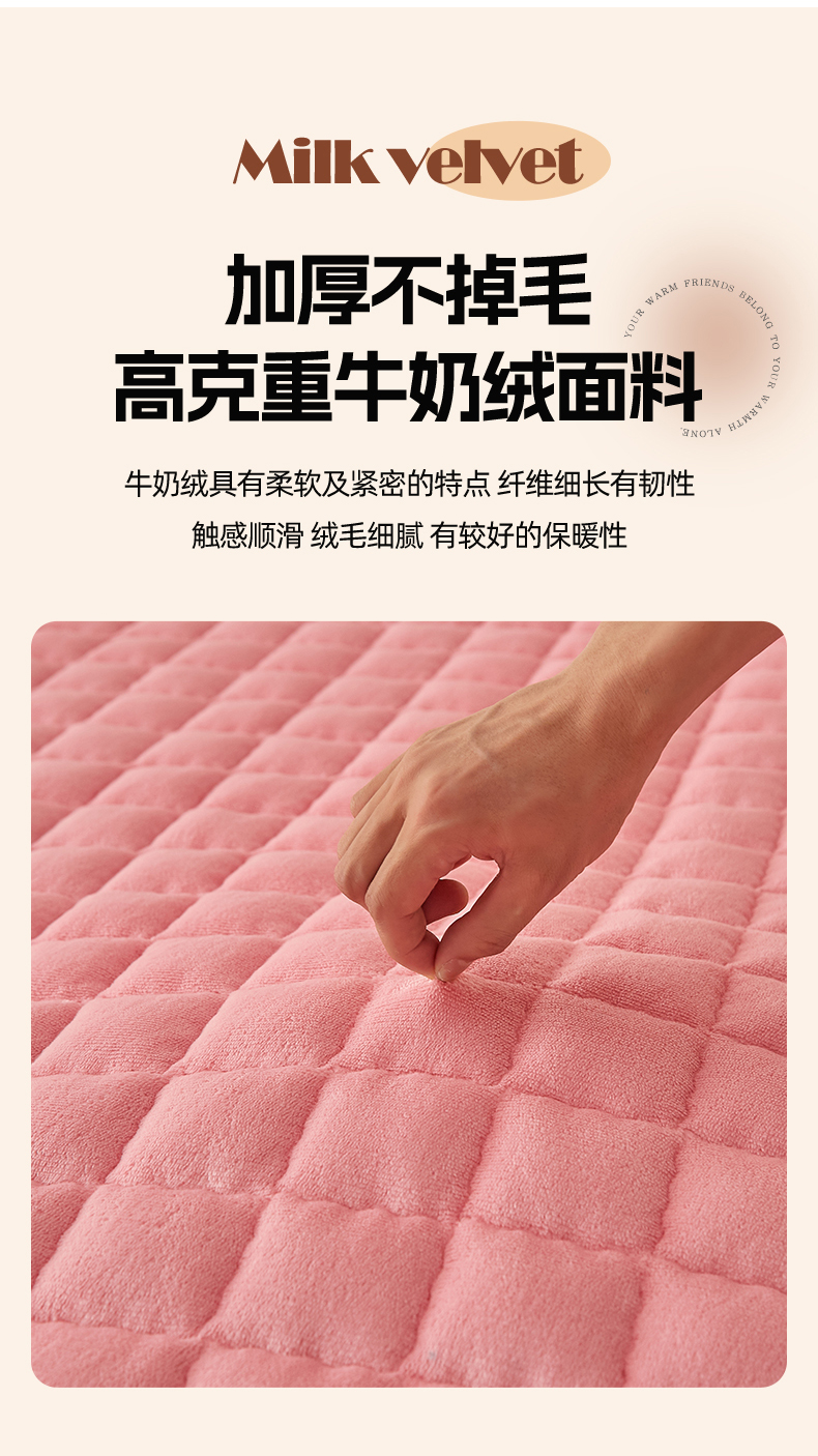 当前位置: 91家纺网 > 商品网购 > 床垫/床褥 > 普通床垫 > 东宇床垫 2025新款A类牛奶绒印花直角防滑床垫床褥三件套-成人款 粉格甜心