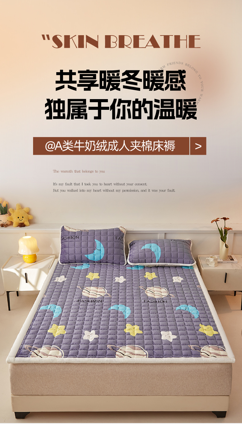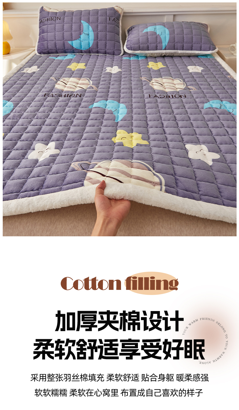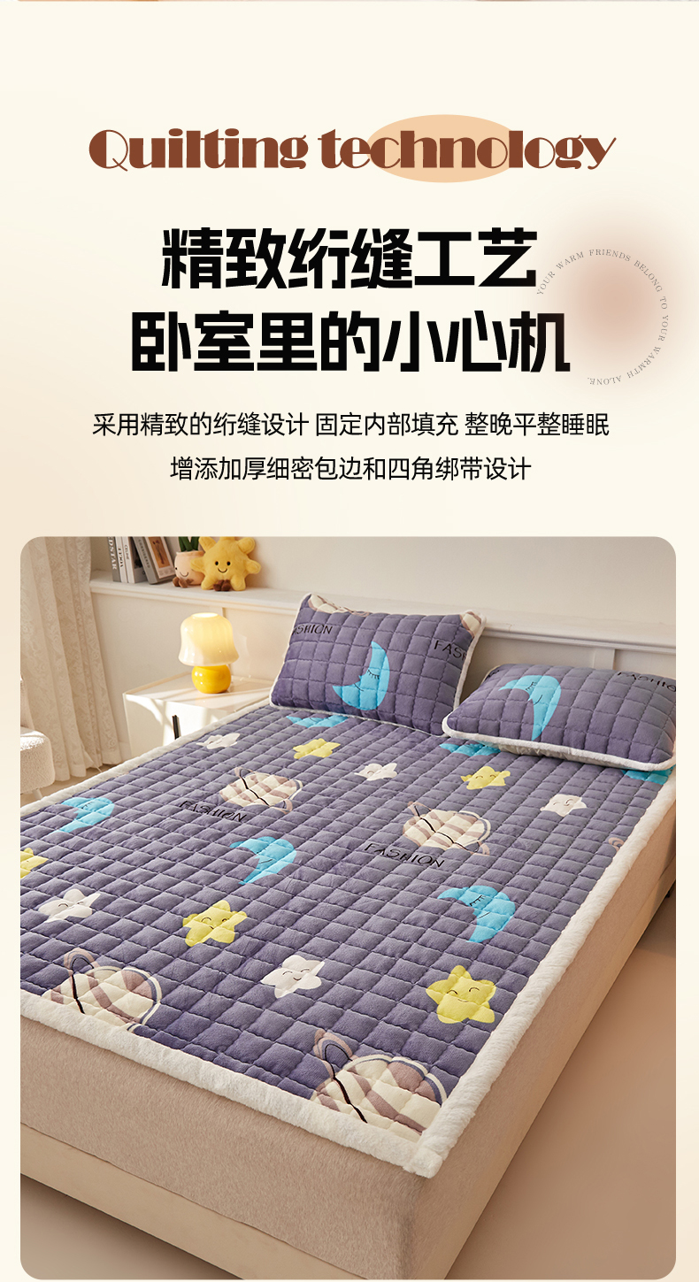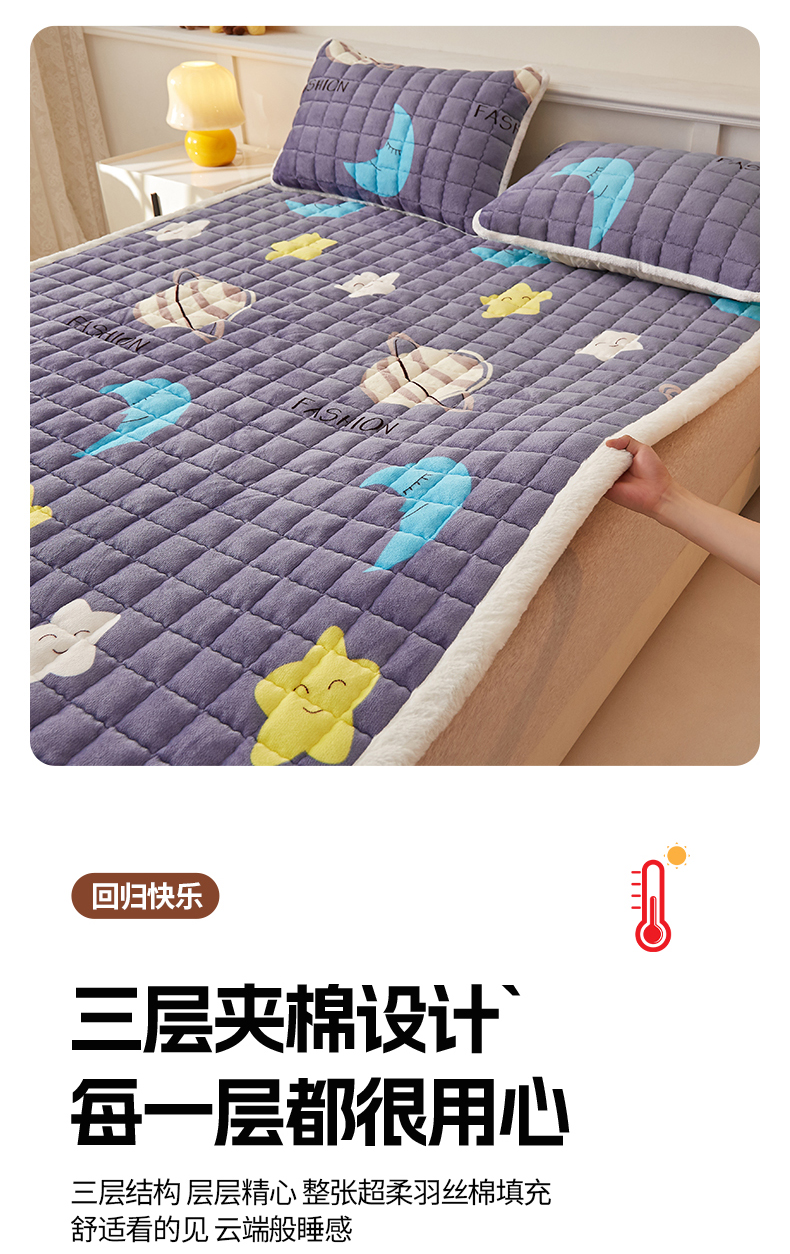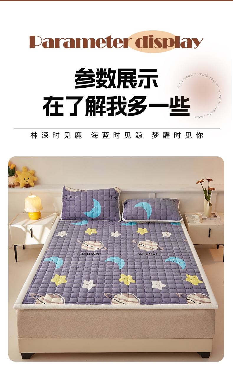 当前位置: 91家纺网 > 商品网购 > 床垫/床褥 > 普通床垫 > 东宇床垫 2025新款A类牛奶绒印花直角防滑床垫床褥三件套-成人款 星球明月