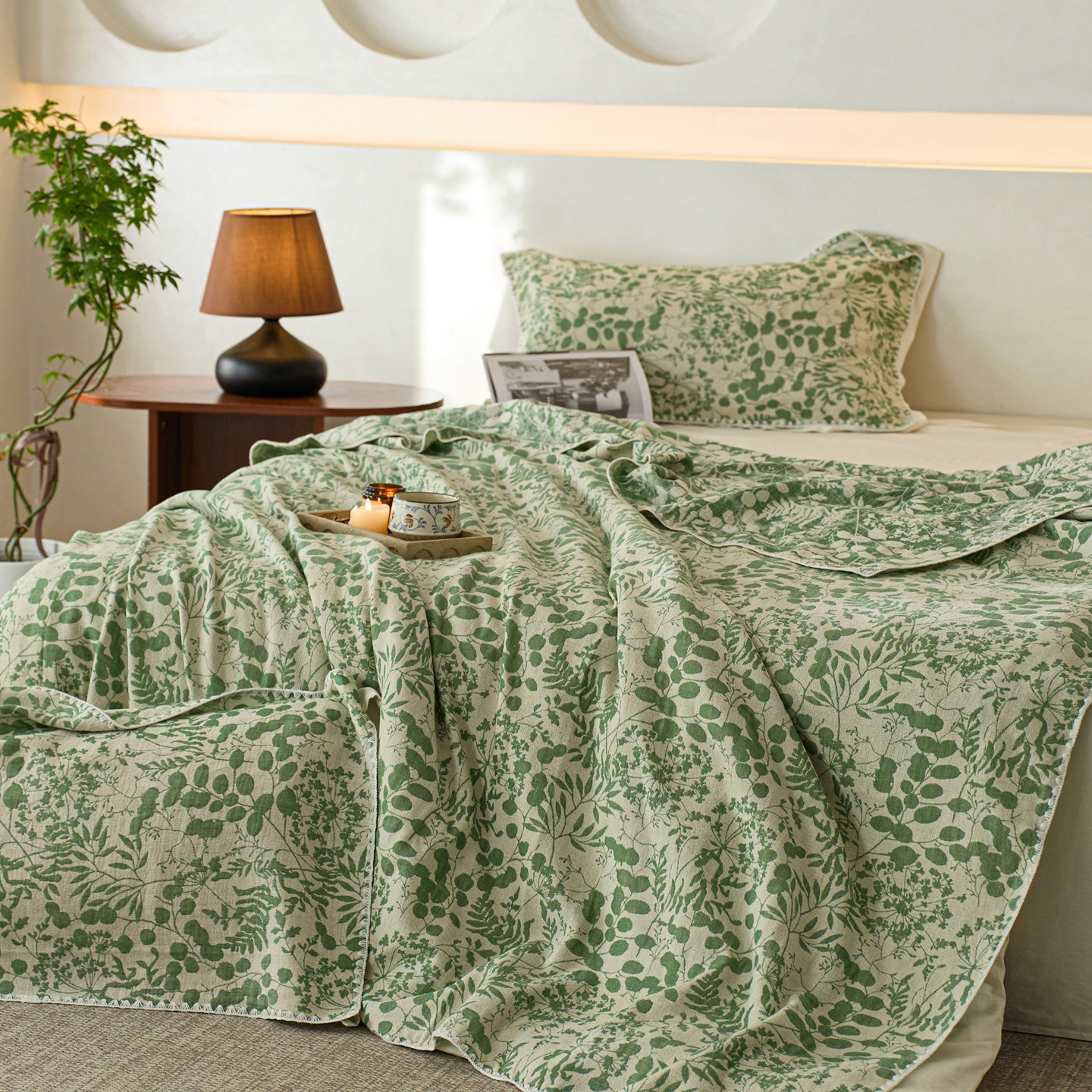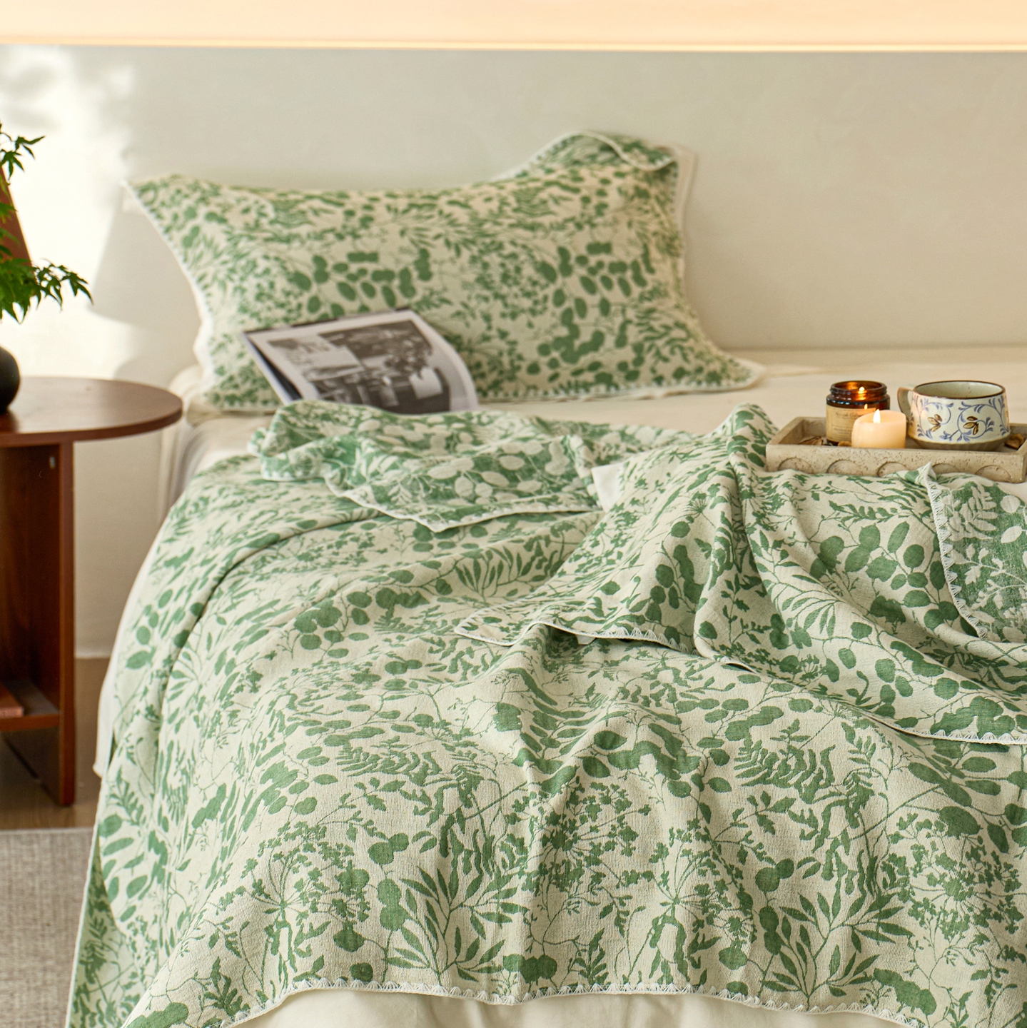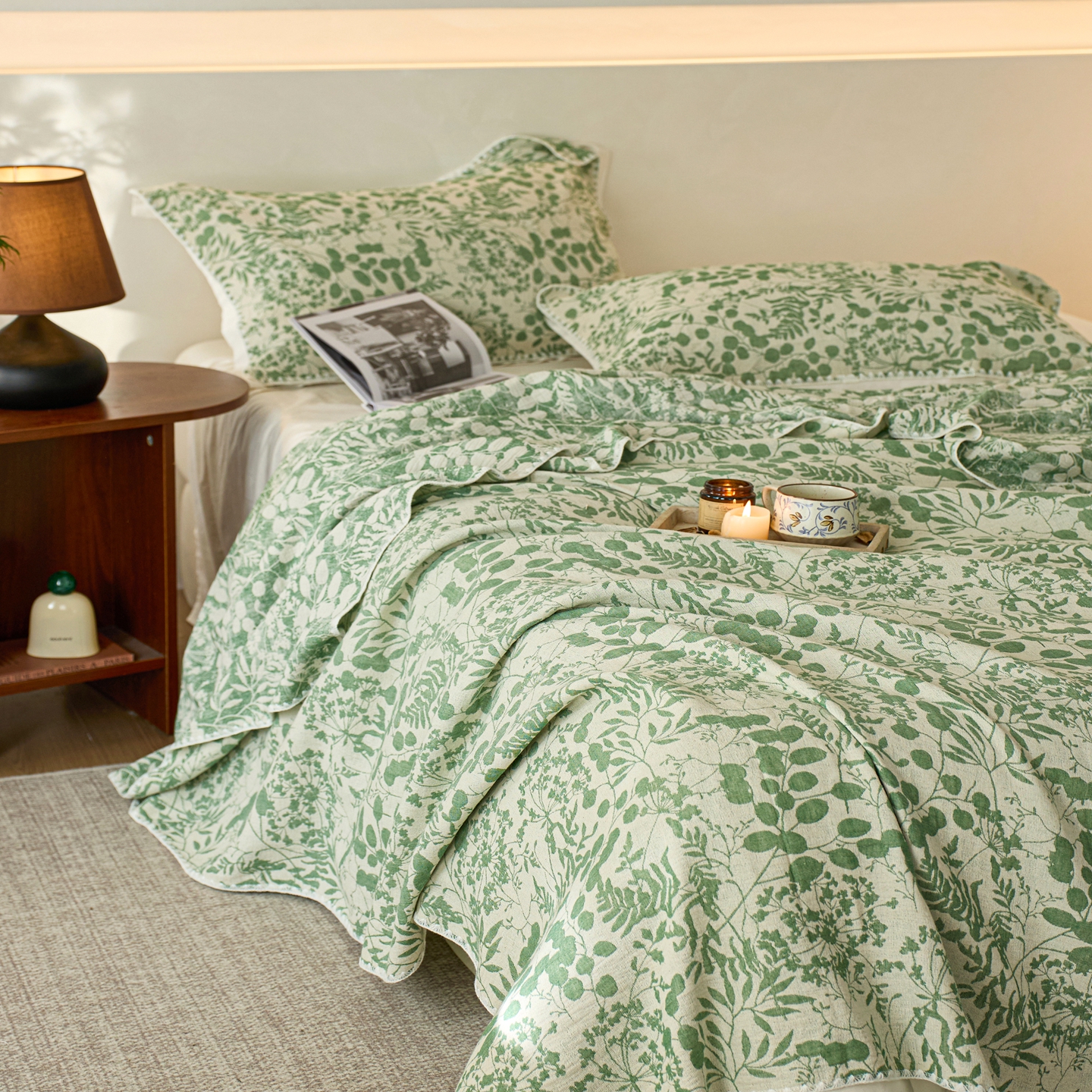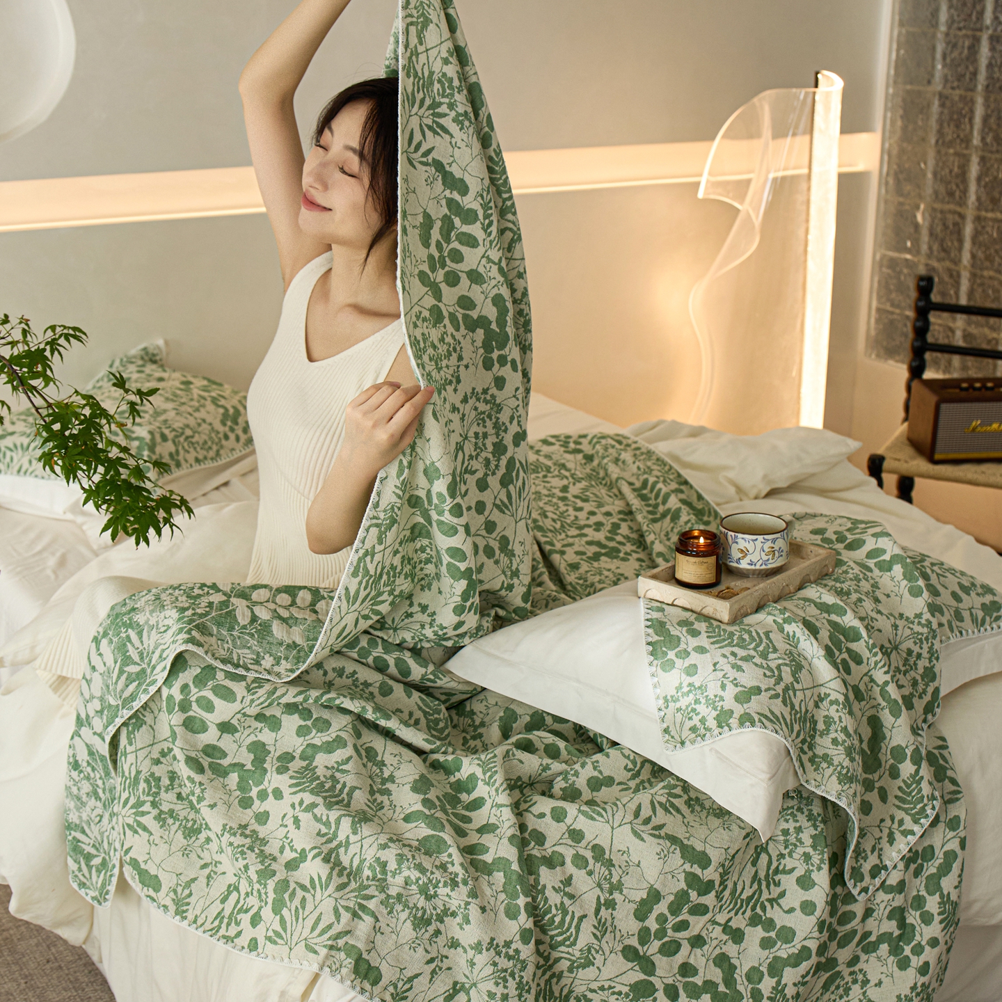 商品名称:安莱生活2025新款双层纱多功能盖毯床盖三件套 新栀子花-绿