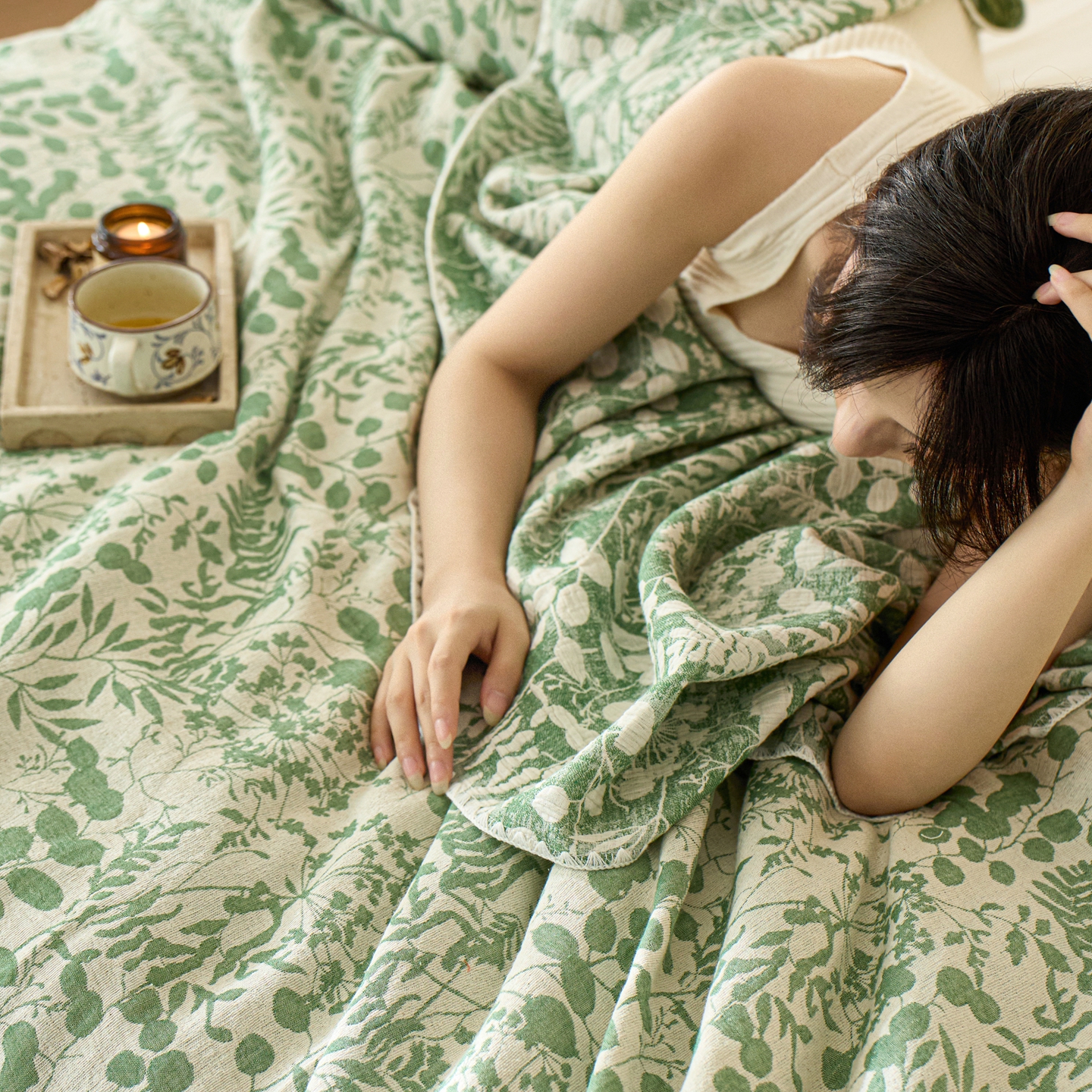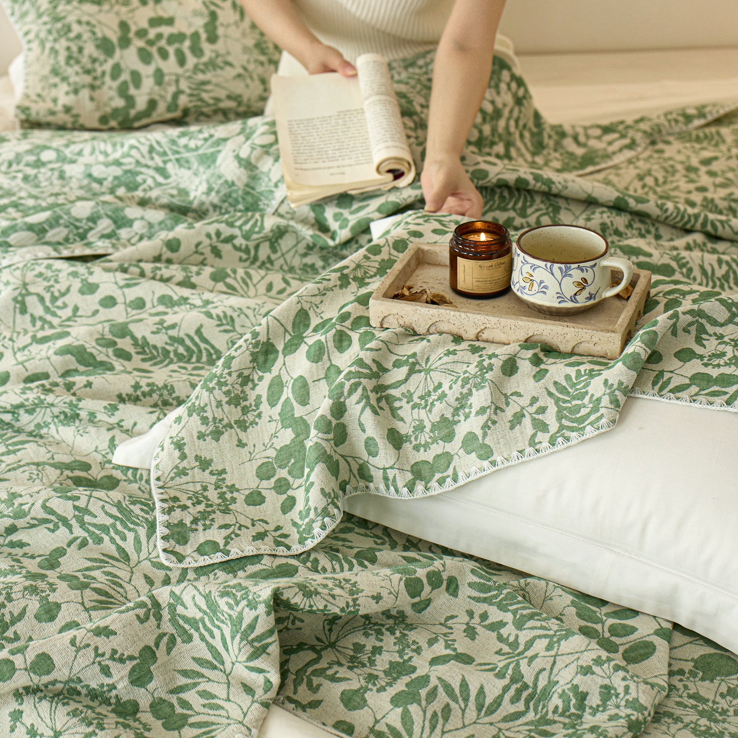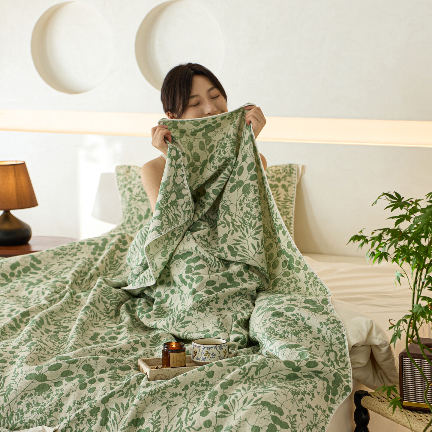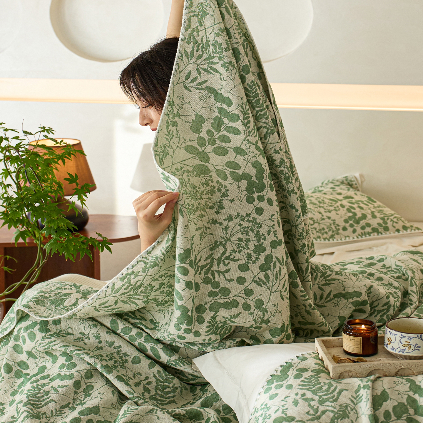 商品名称:安莱生活2025新款双层纱多功能盖毯床盖三件套 新栀子花-绿