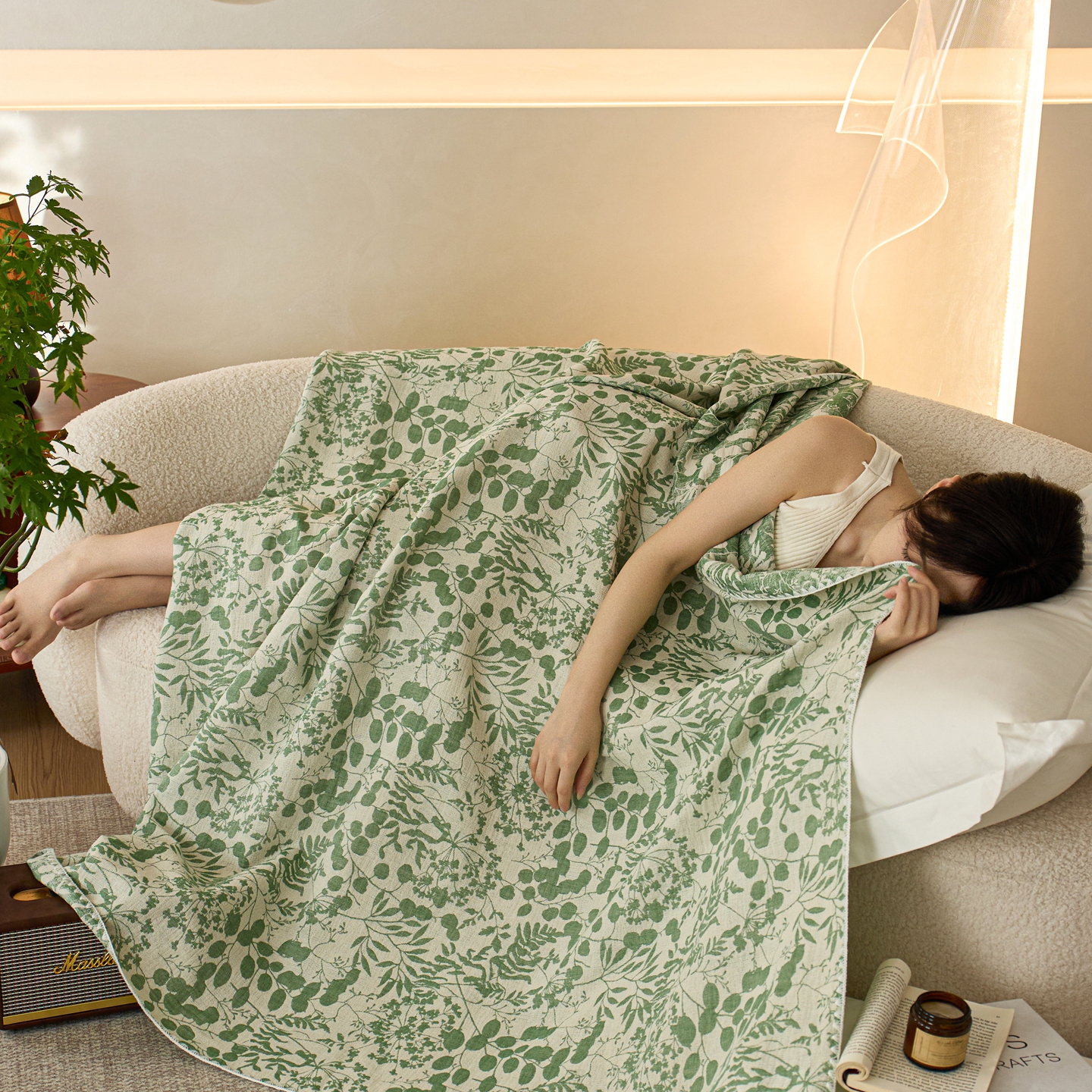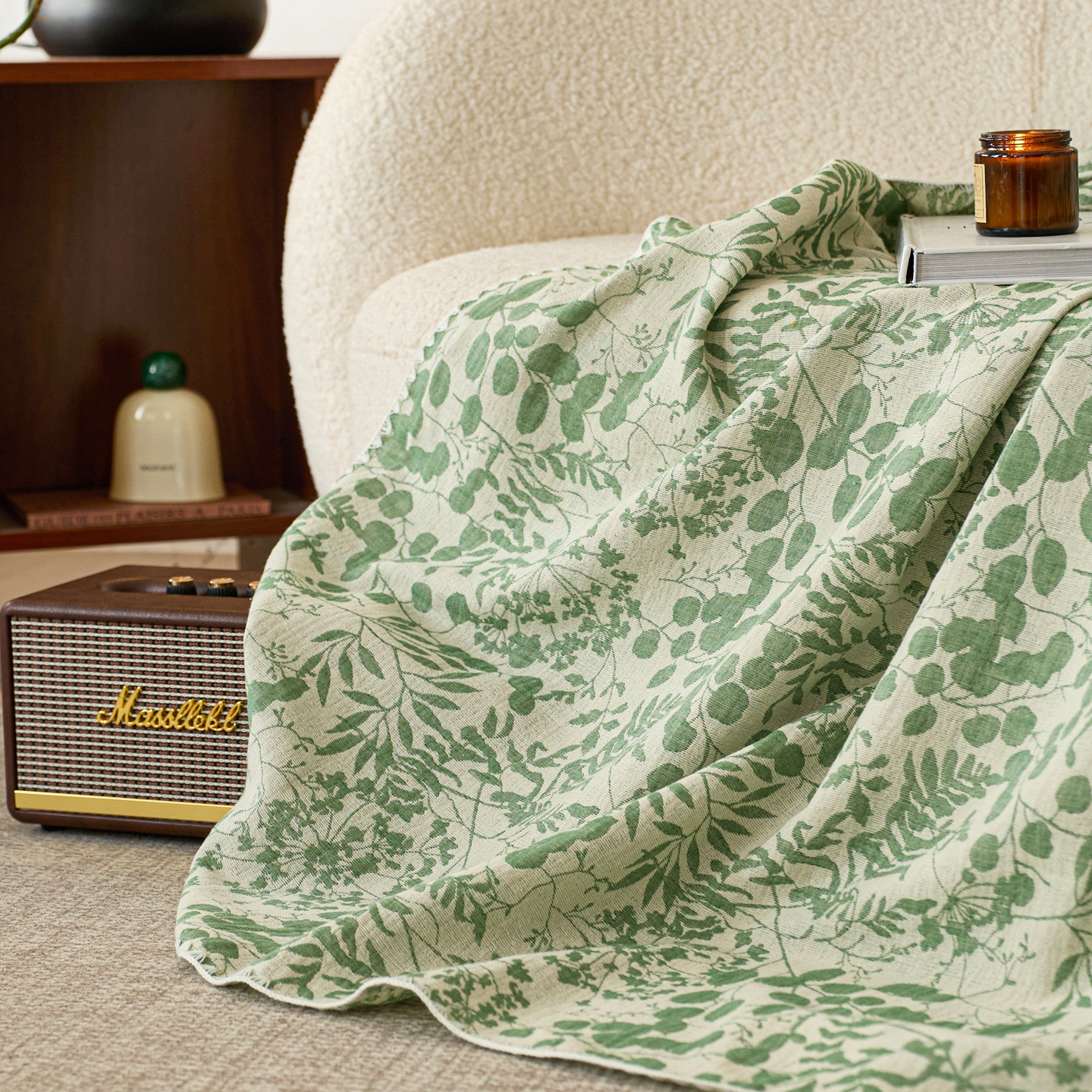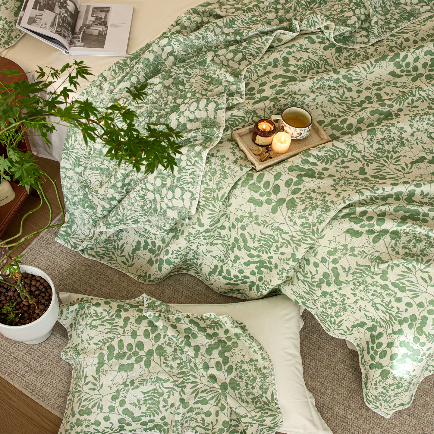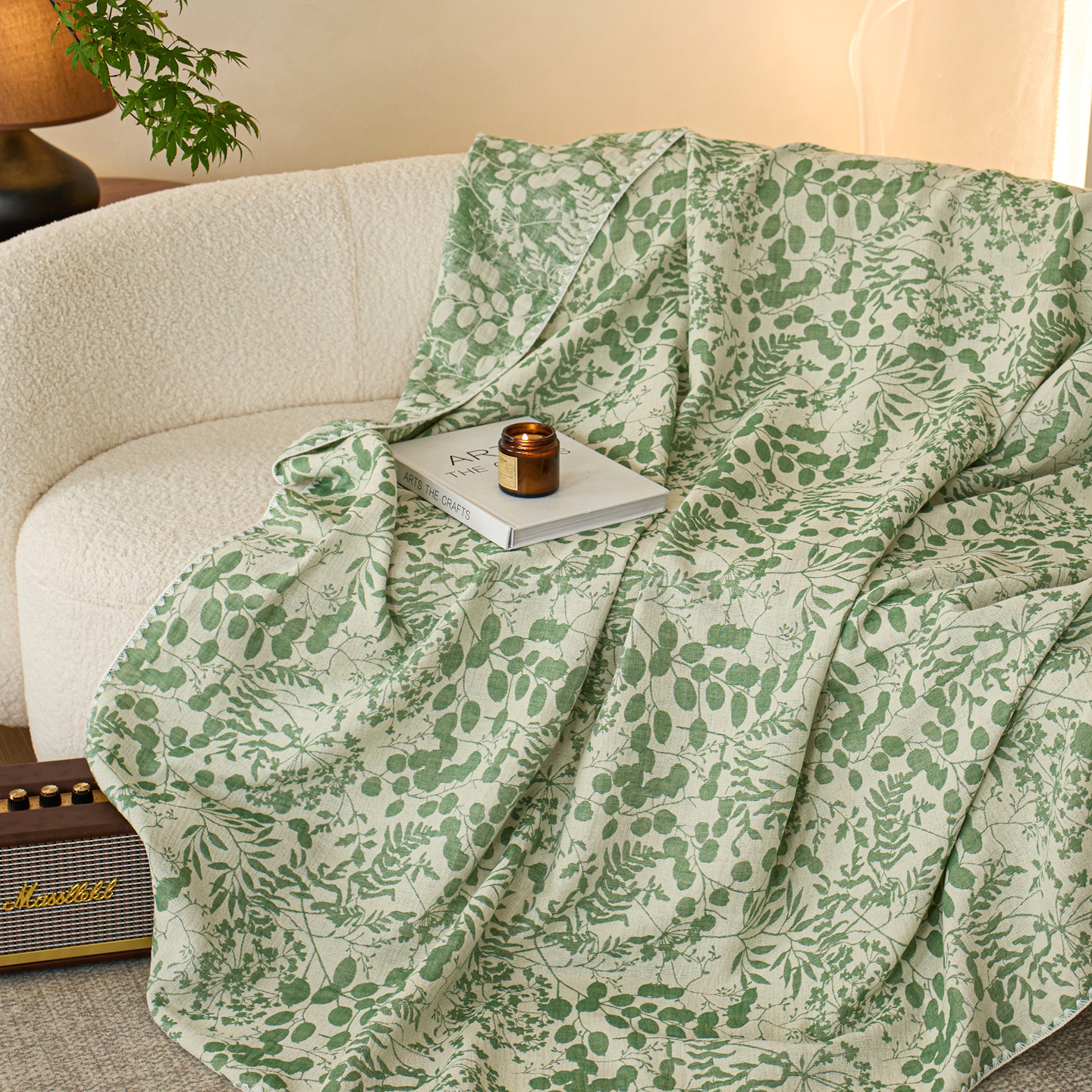 商品名称:安莱生活2025新款双层纱多功能盖毯床盖三件套 新栀子花-绿