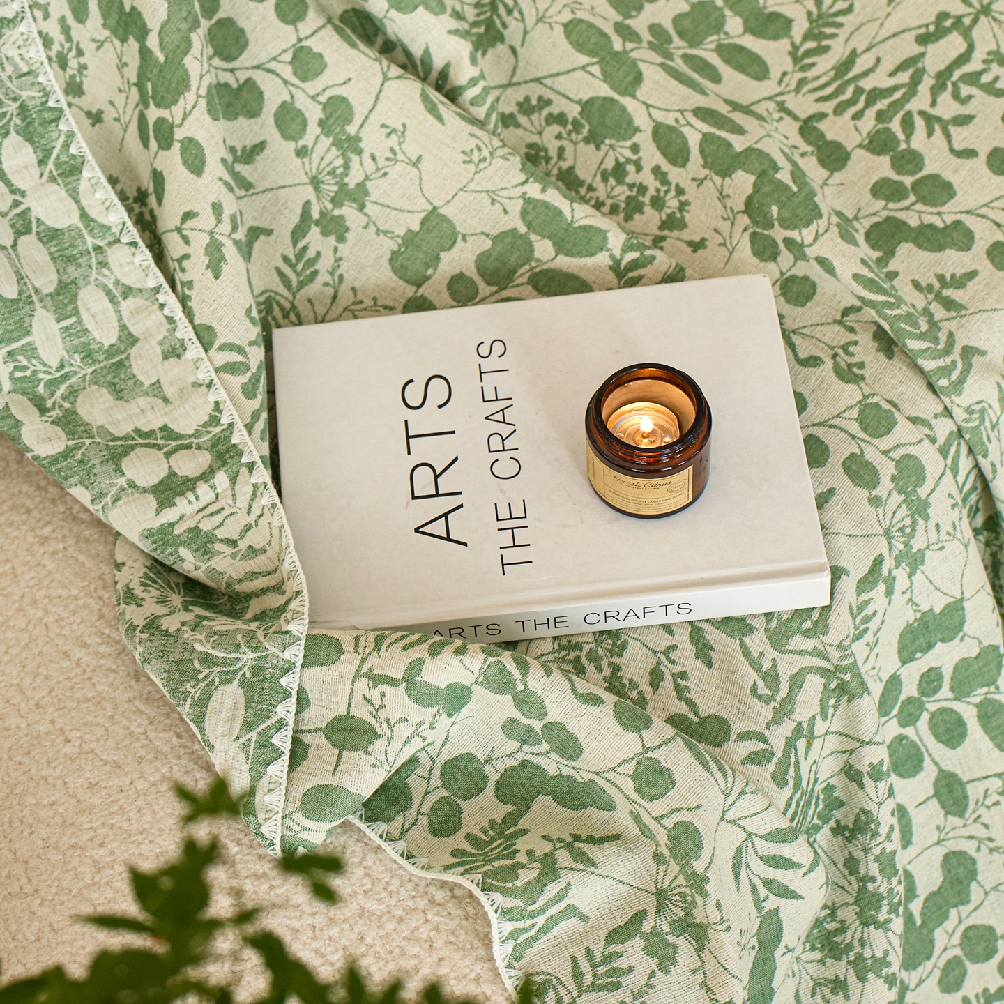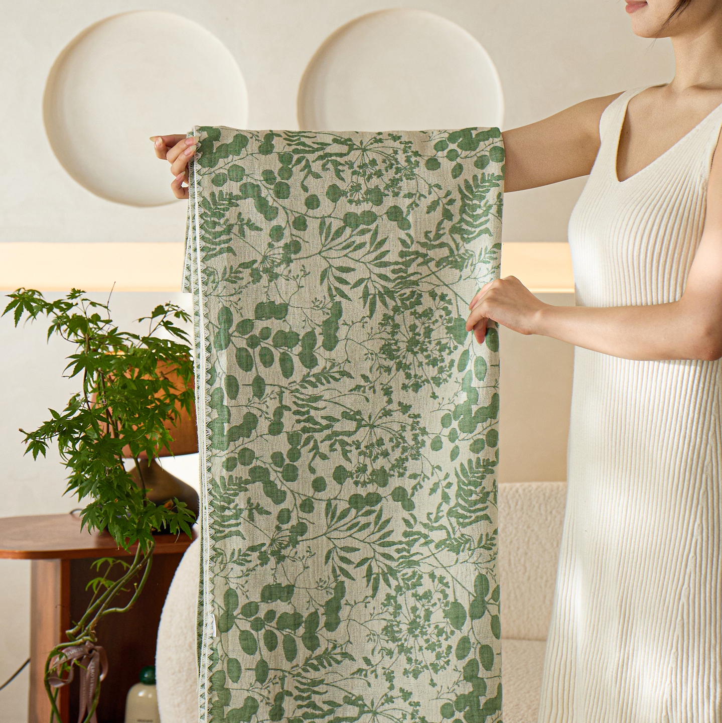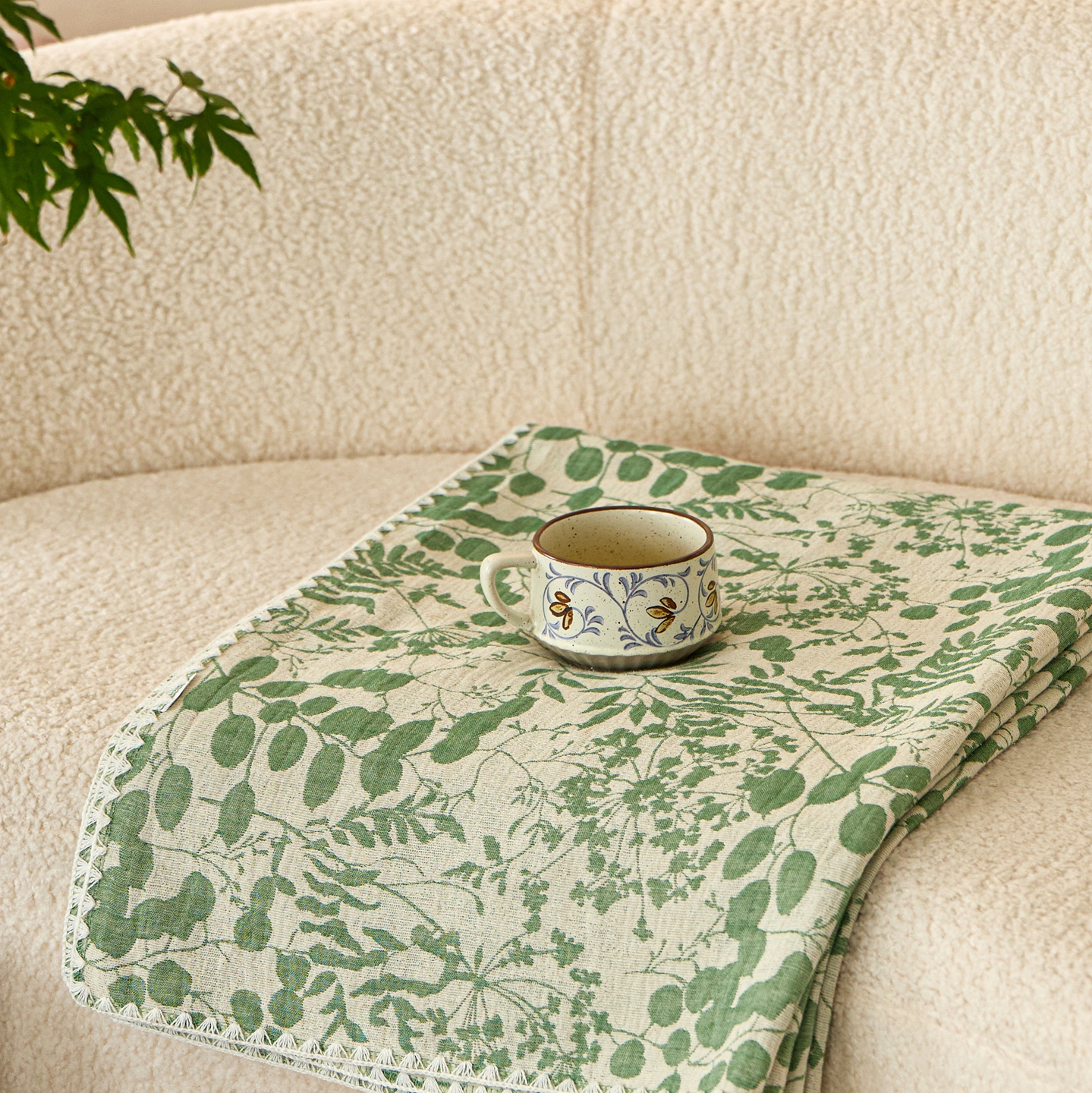 安莱生活2025新款双层纱多功能盖毯床盖三件套 新栀子花-绿