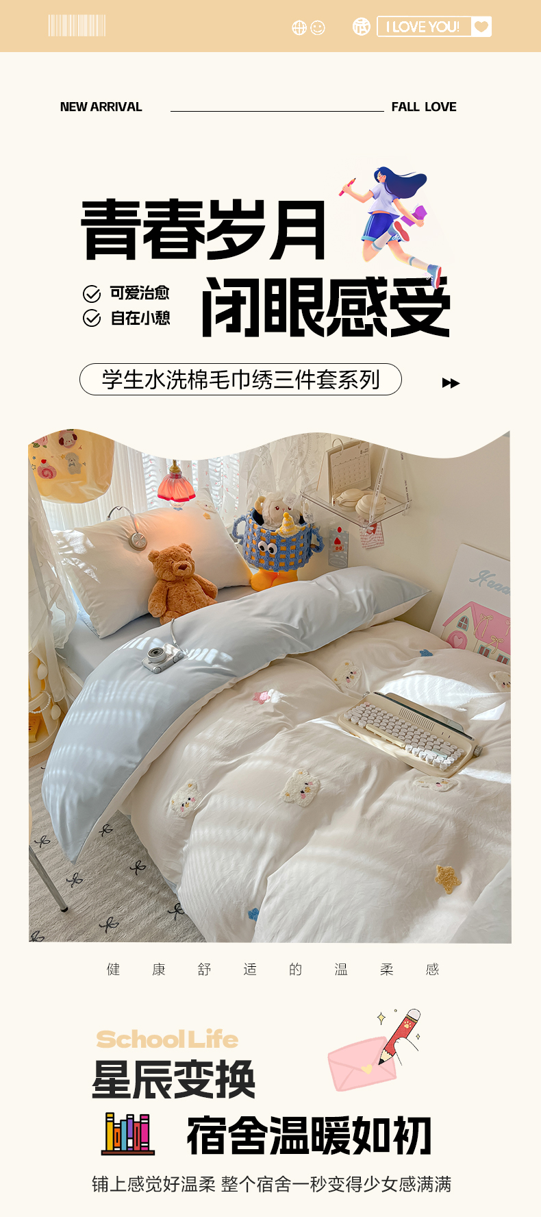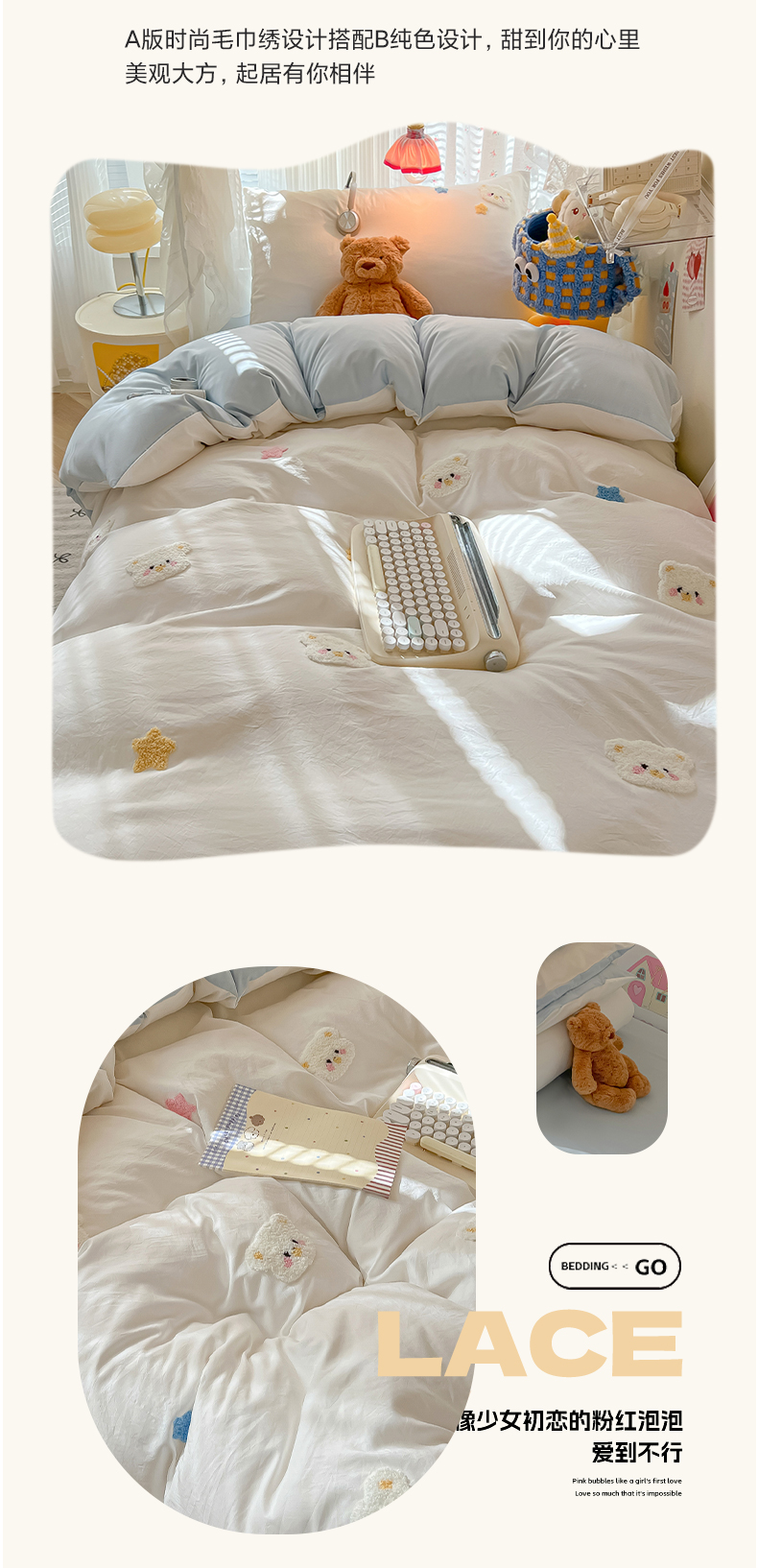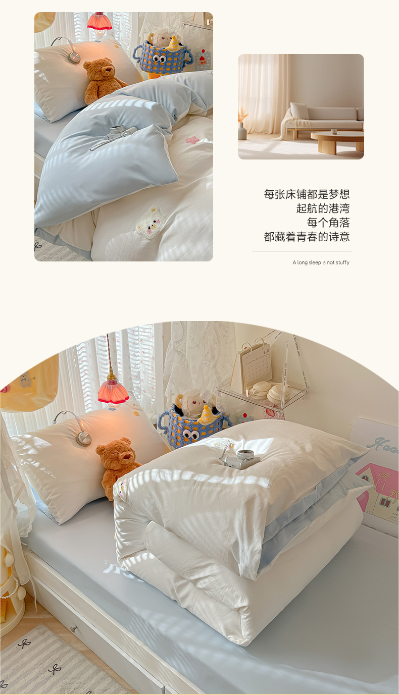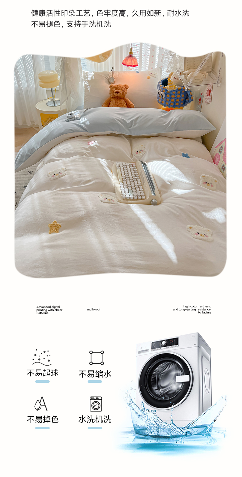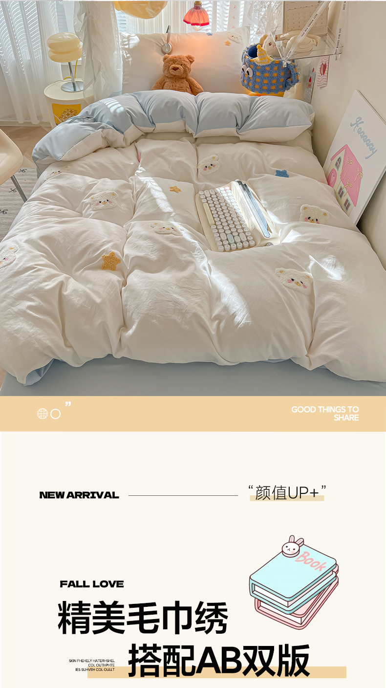 当前位置: 91家纺网 > 商品网购 > 床品套件 > 三件套 > 韩巢家纺 2025新款学生宿舍寝室高低床水洗棉毛巾绣学生季被套床单三件套-幸运熊 幸运熊白蓝