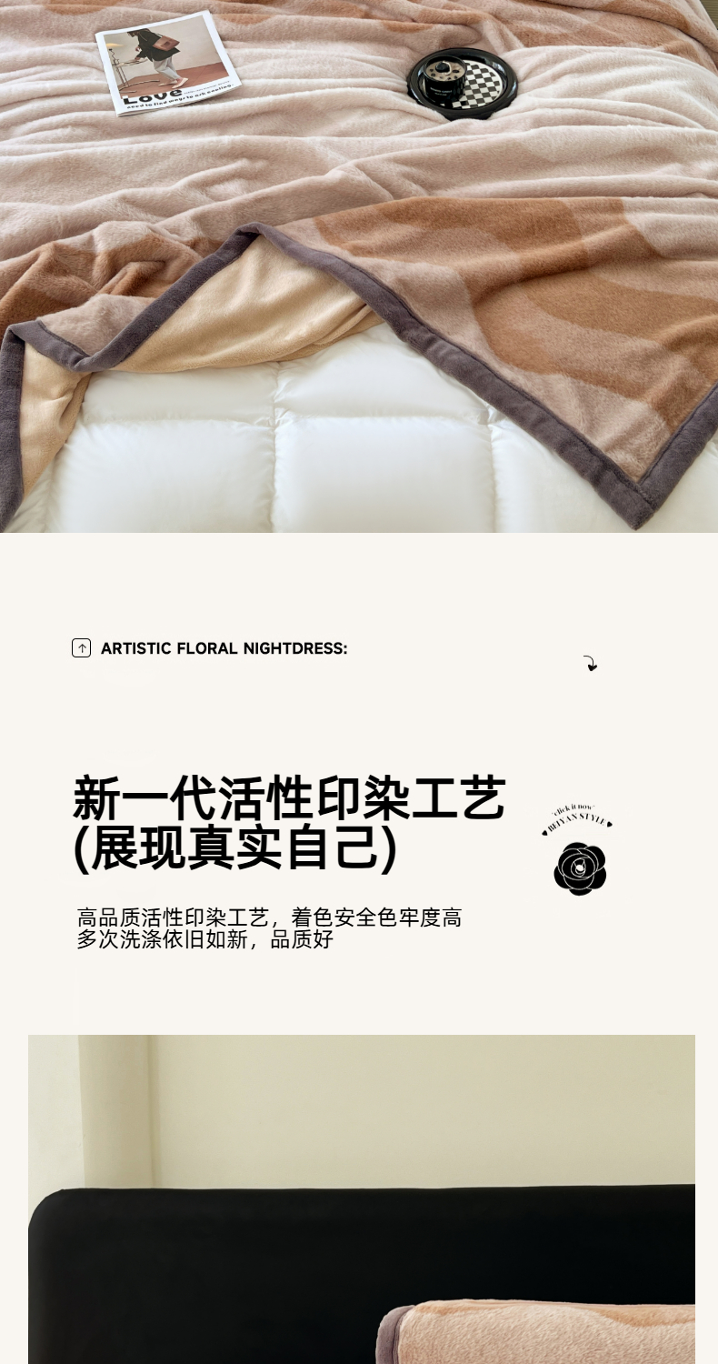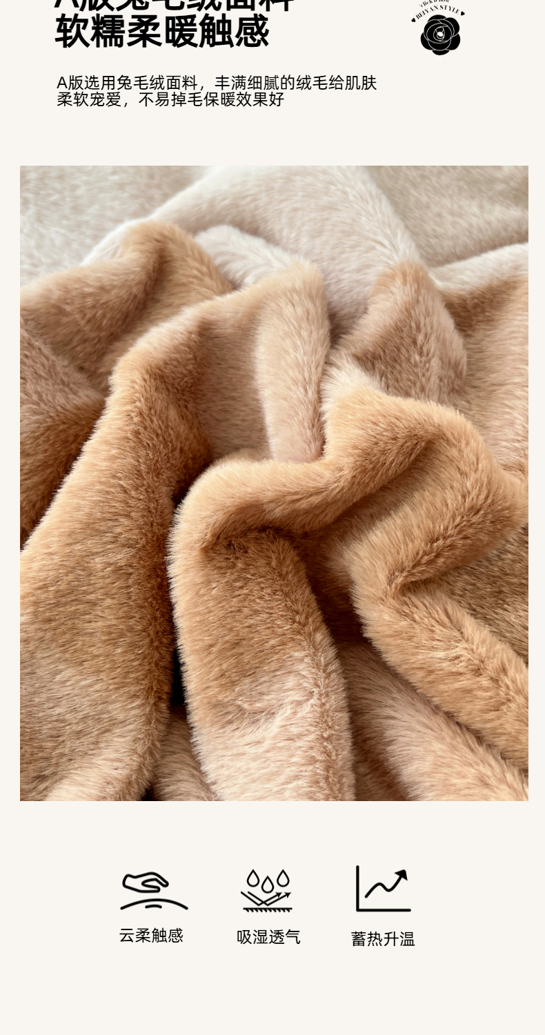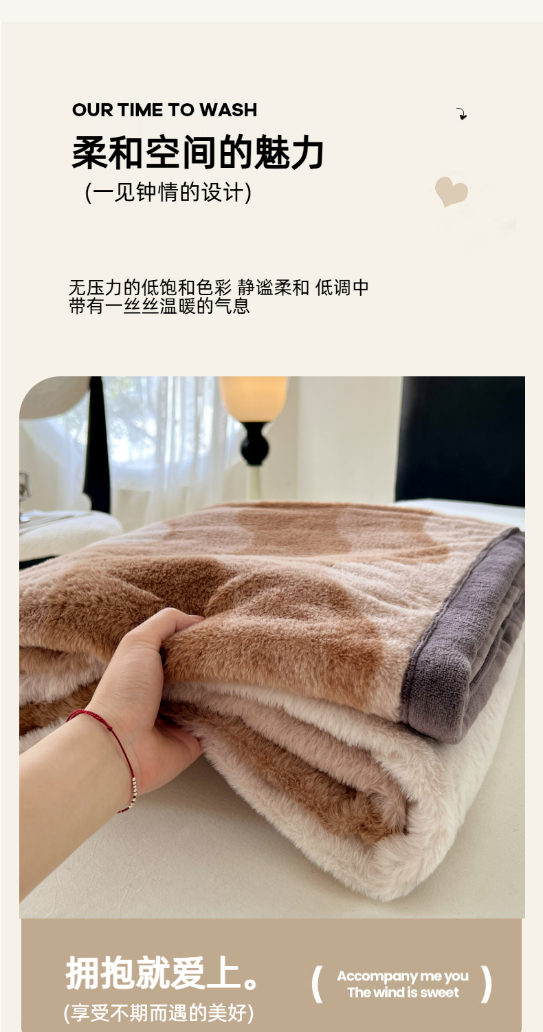 商品名称:锦润家纺 2025新款高克重多功能兔毛绒包边毛毯毯子 瑞格利亚-咖