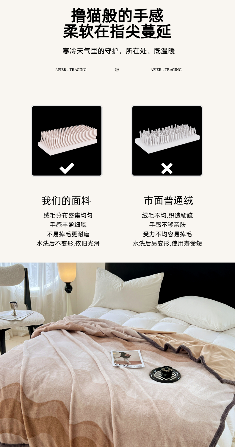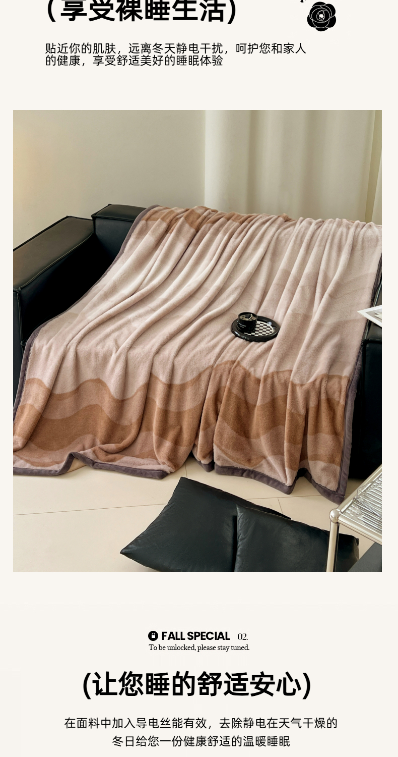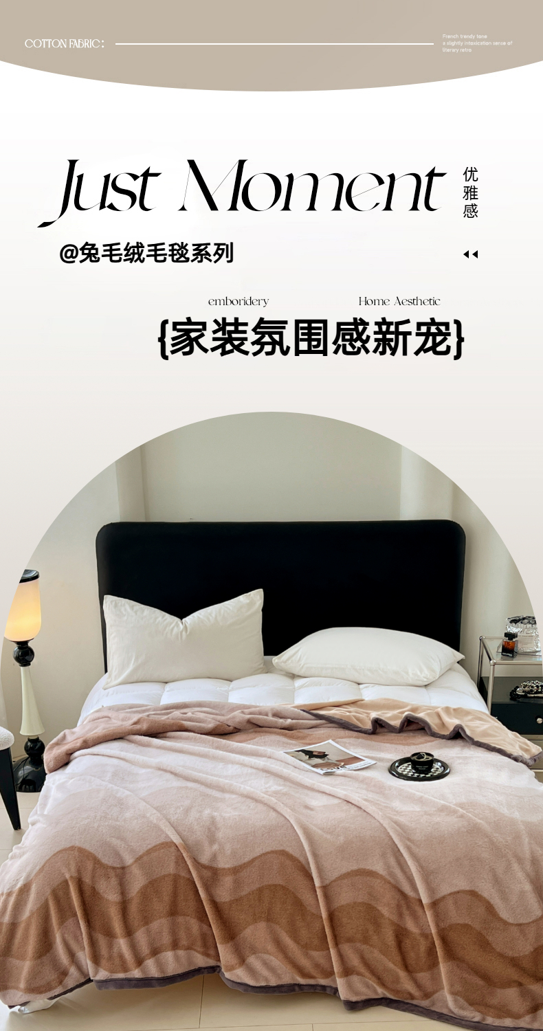 商品名称:锦润家纺 2025新款高克重多功能兔毛绒包边毛毯毯子 瑞格利亚-咖
