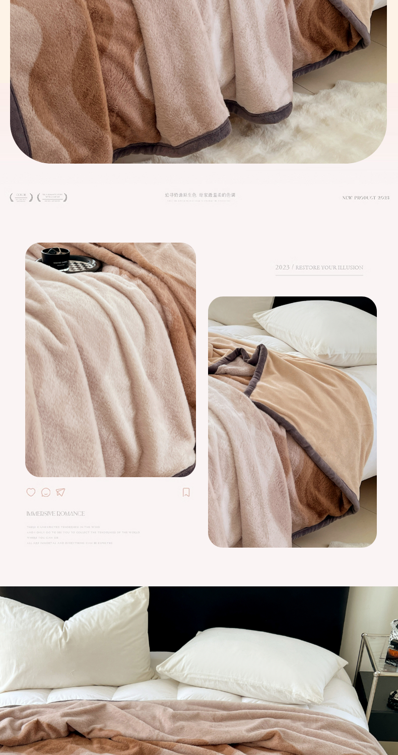 锦润家纺 2025新款高克重多功能兔毛绒包边毛毯毯子 瑞格利亚-咖