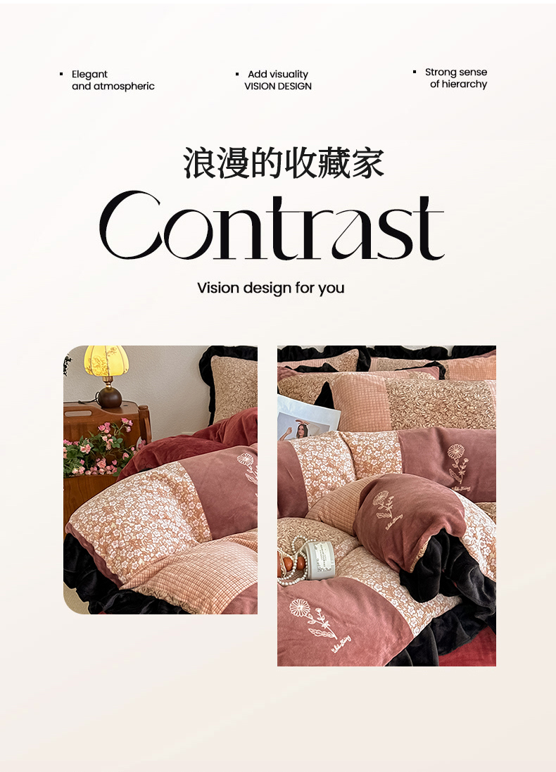 (总)亿品家纺 2025新款亲肤舒适黑花边床盖四件套,赫本风-蝴蝶印记,赫本风-花束,赫本风-波点爱心,赫本风-花香,赫本风-花恋,赫本风-藤语花