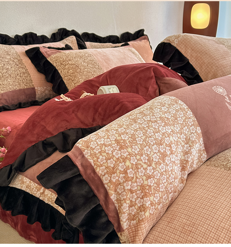 总亿品2025新款直播爆款韩版赫本风高克重牛奶绒四件套床裙款 8.5斤(有买家秀加v),暗香疏影,春风十里,春枝,扶苏,红叶寄暖,花浅红,花影,花语,露娜,漫花飞舞,摩登时代,秋恋,赛琳娜,水树风闲,椰树林,知秋,花边紫韵