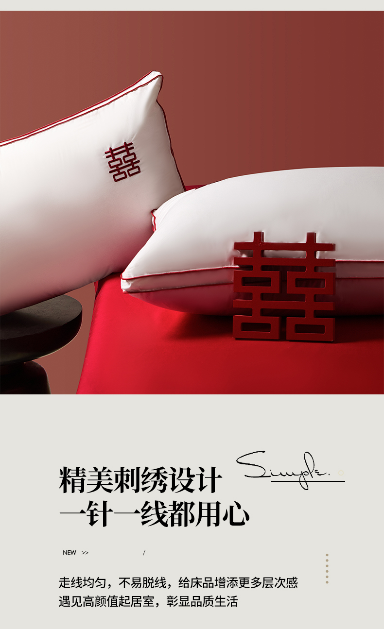 商品名称:(总)欧乐蒂 2025新款婚庆刺绣立体边纤维枕